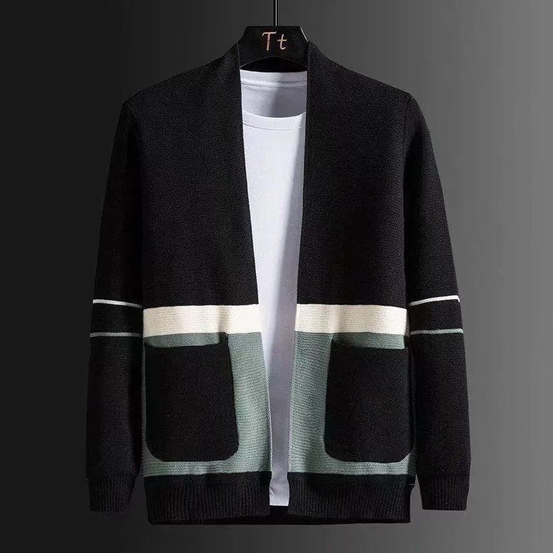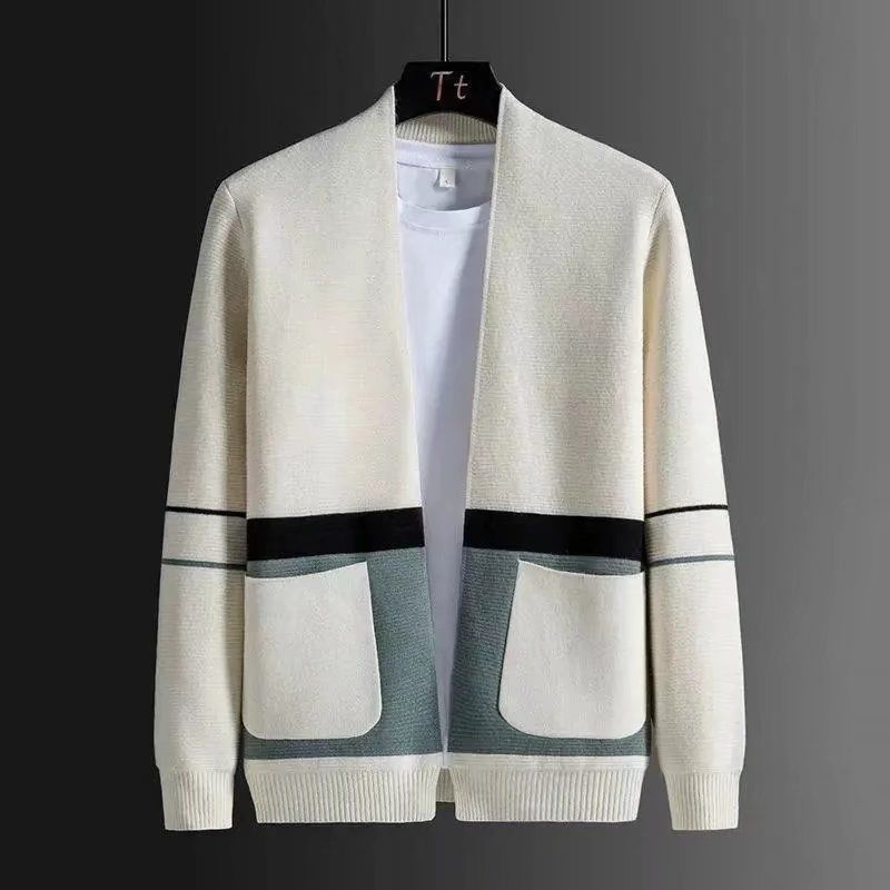 2023 Autumn Winter Men's V-neck All-match Patchwork Pocket Knitted Cardigan Fashion Casual Elegant Commuter Long Sleeve Sweater