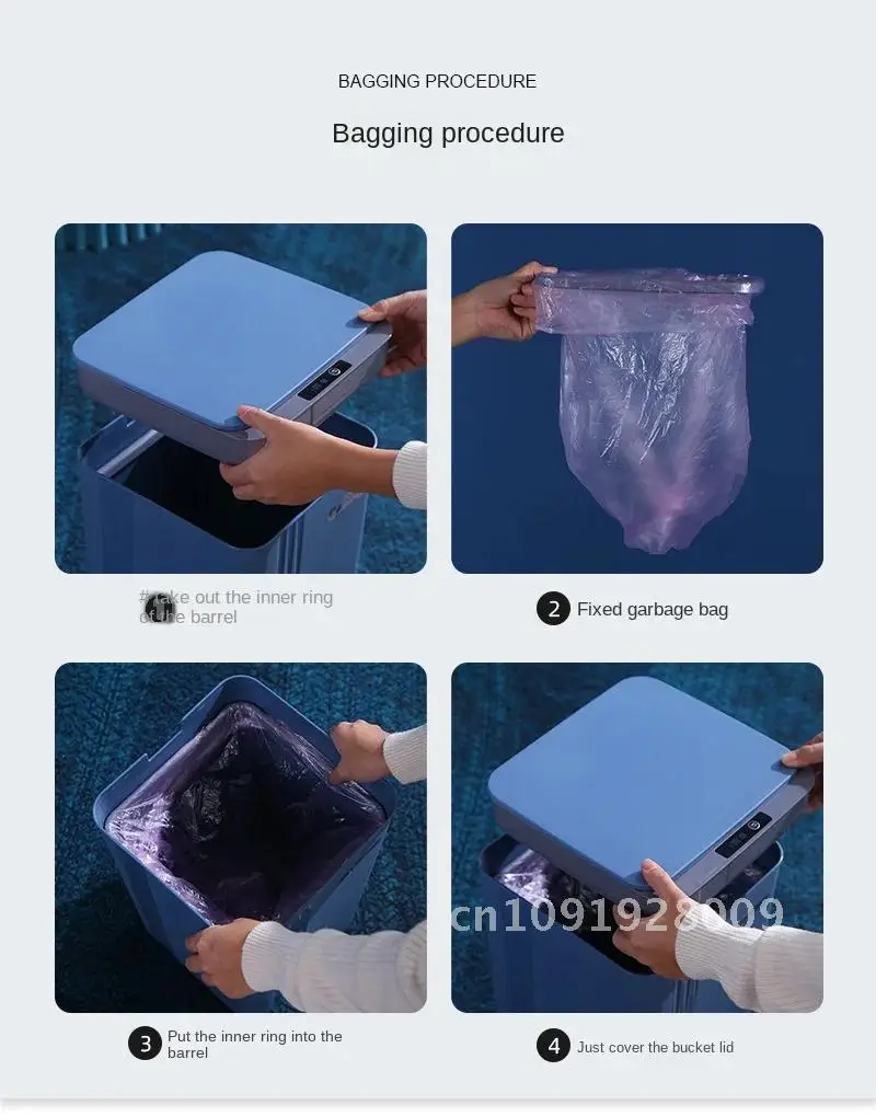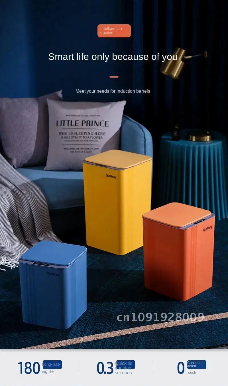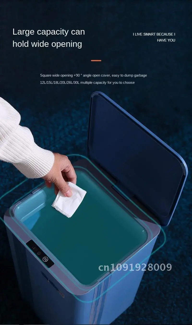20L Smart Induction Trash Can Kitchen Bathroom Waterproof Automatic Cleaning Dustbin Trash Smart LED Home Sensor Bin with Light