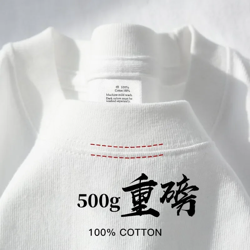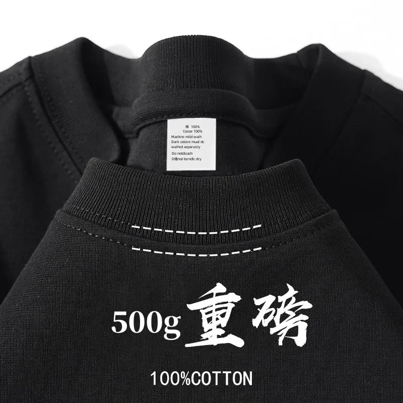 500g Heavy Cotton Solid Color Short-sleeved T-shirt Men's and Women's Same Body Shirt Inner Top Men's Half-sleeved T-shirt