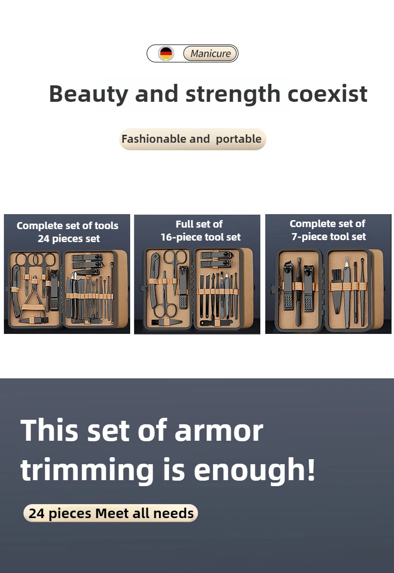 7/16/24 Pcs Manicure Set Professional Nail Clipper Kit Stainless Steel Manicure Kit,nail Care Tools with Luxurious Travel Case