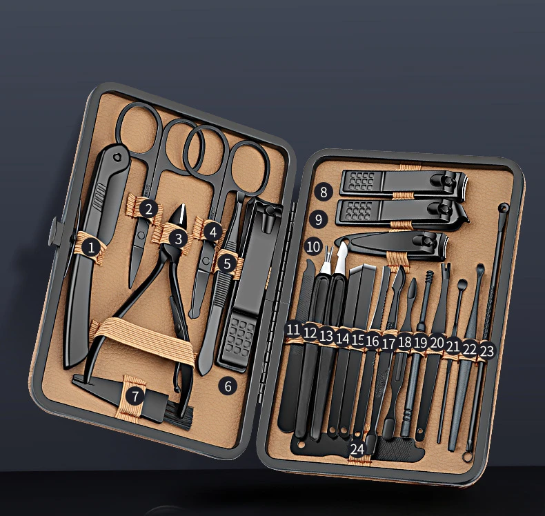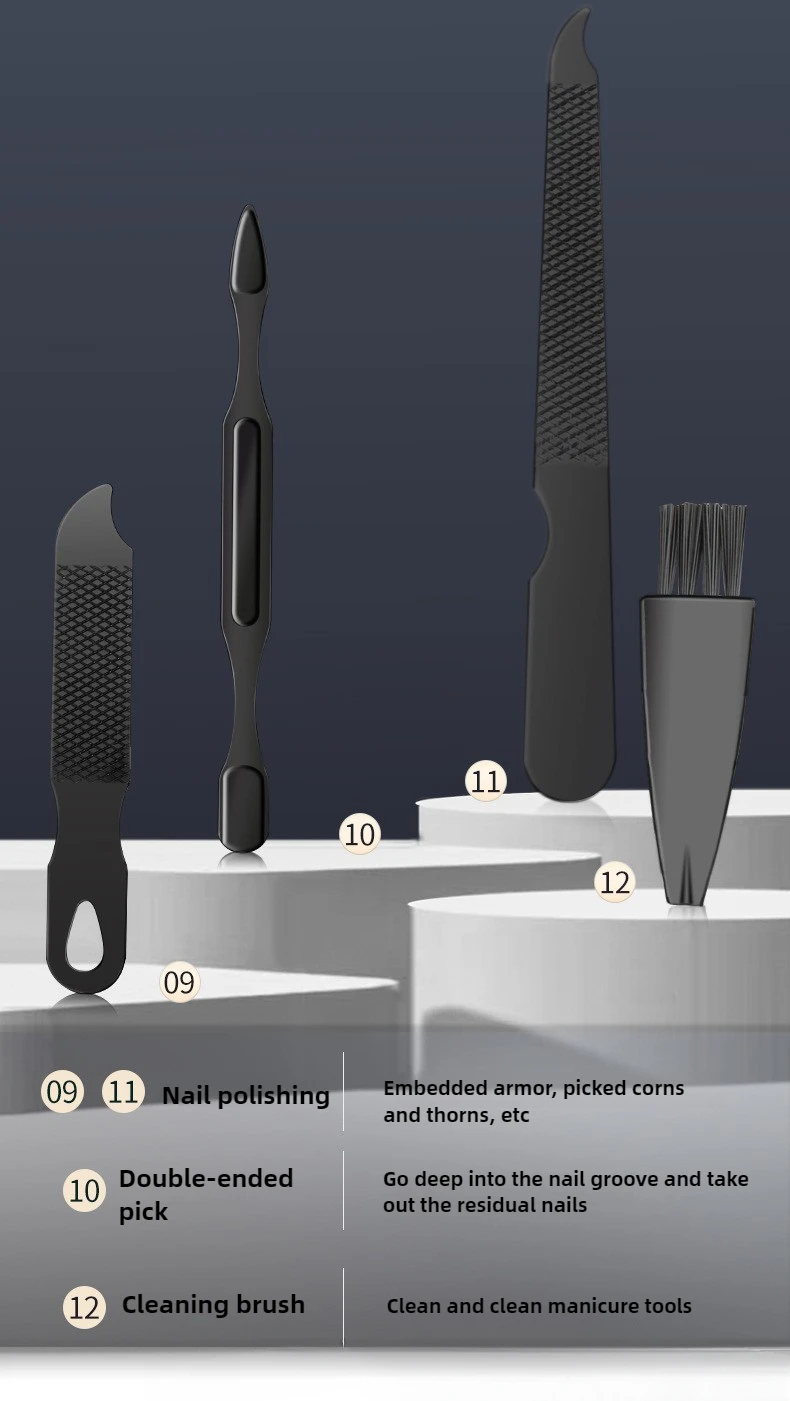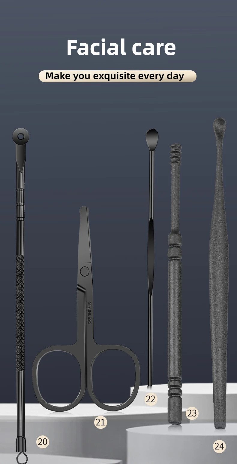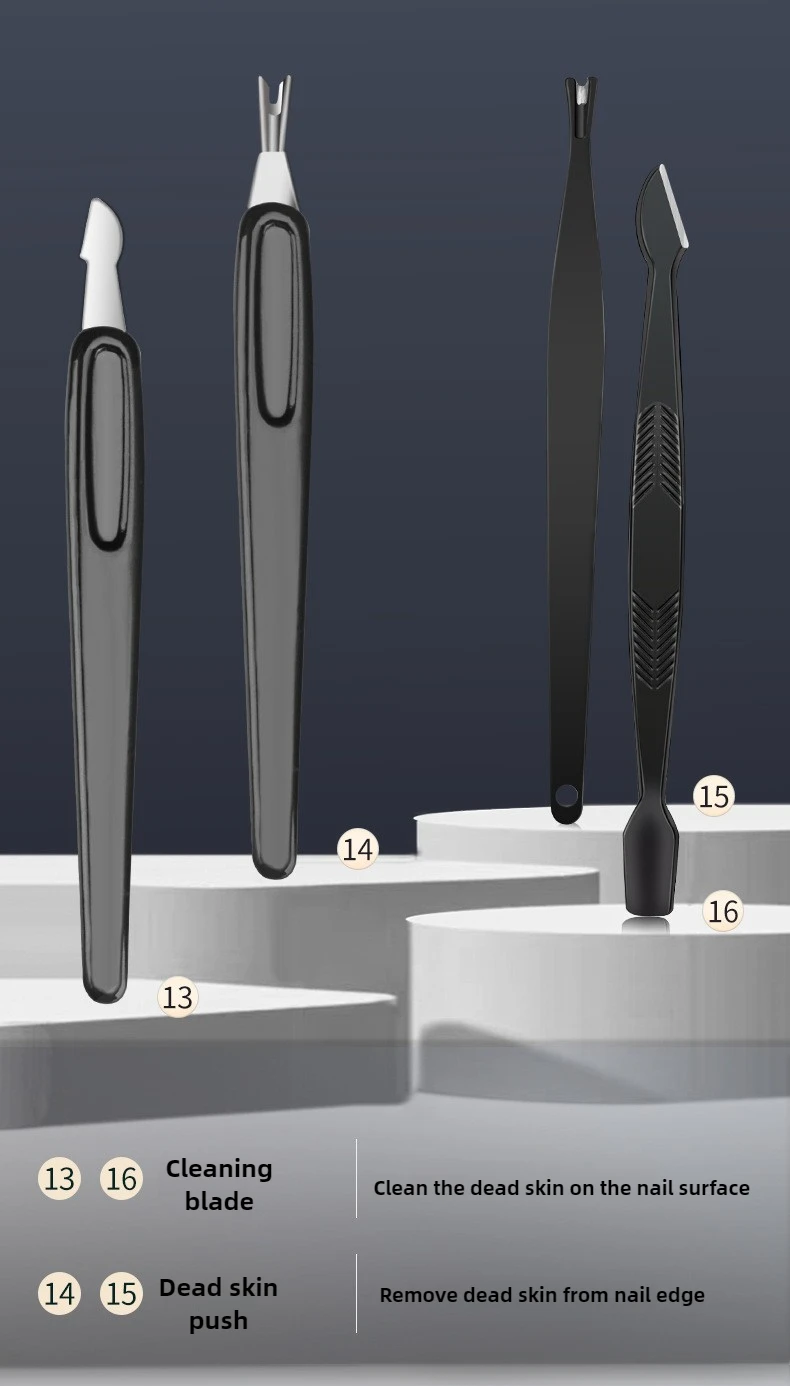 Our manicure set is a comprehensive collection of essential tools. From clippers for precise nail trimming to files for shaping, and cuticle pushers for a clean - cut look, it has everything you need for a complete nail care routine. No more hunting for individual tools; everything is neatly packaged in one set.