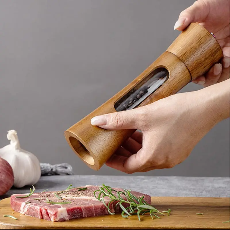 8inch Pagoda Acrylic Pepper Mill Sets With Base,Manual Wooden Salt and Pepper Grinder With Ceramic Core Spice Shaker Tools Sets