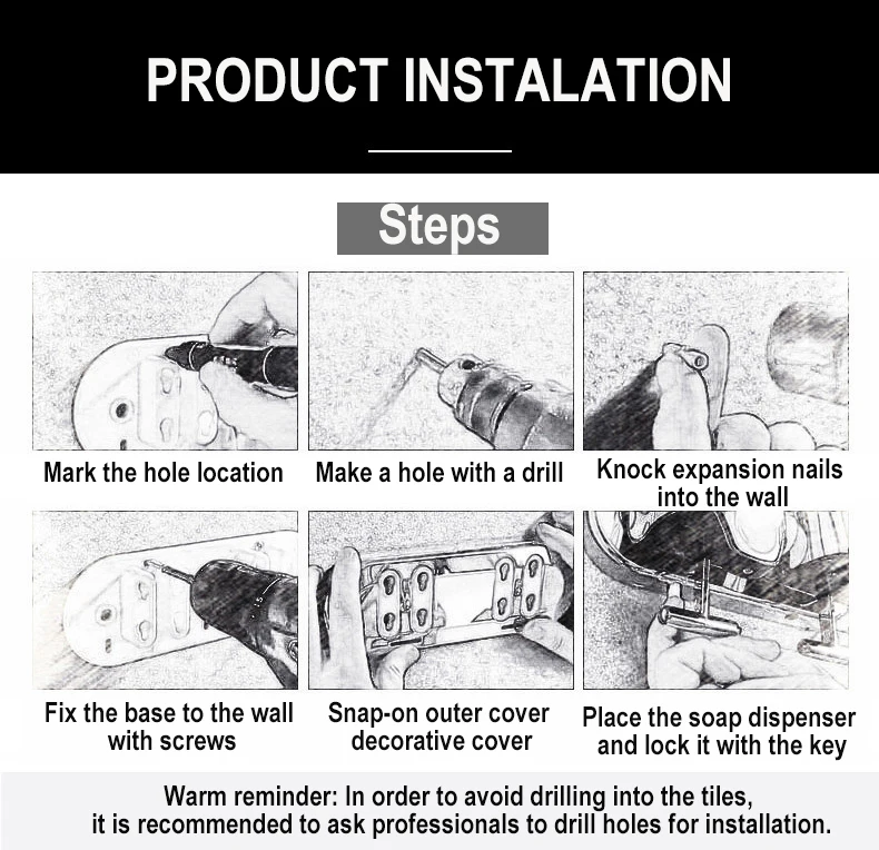 Note:The stainless steel part of this soap dispenser is attached with a thin white protective film, to ensure your experience, you need to tear off the film after receiving it!
