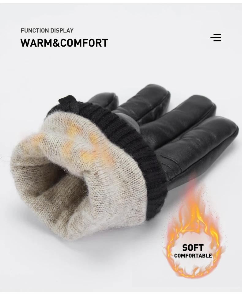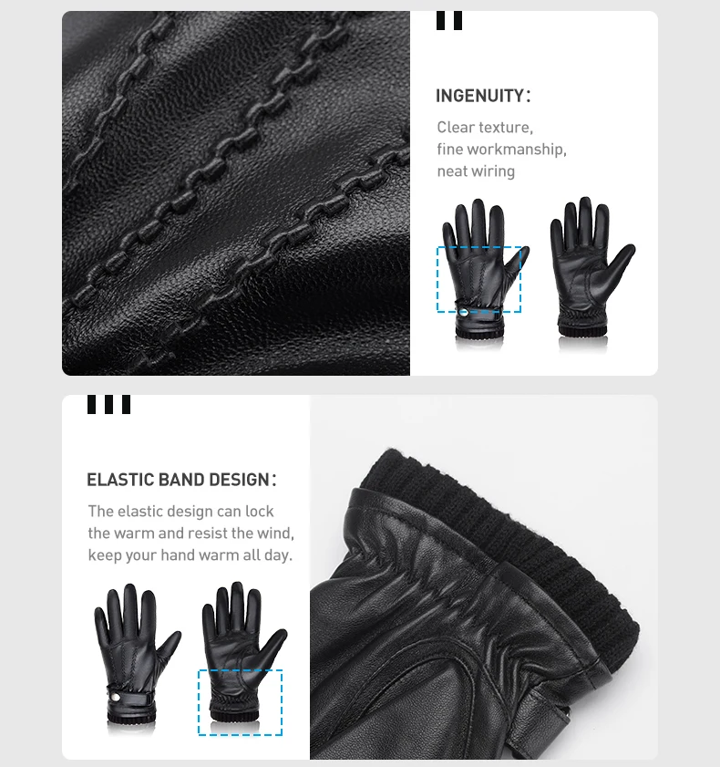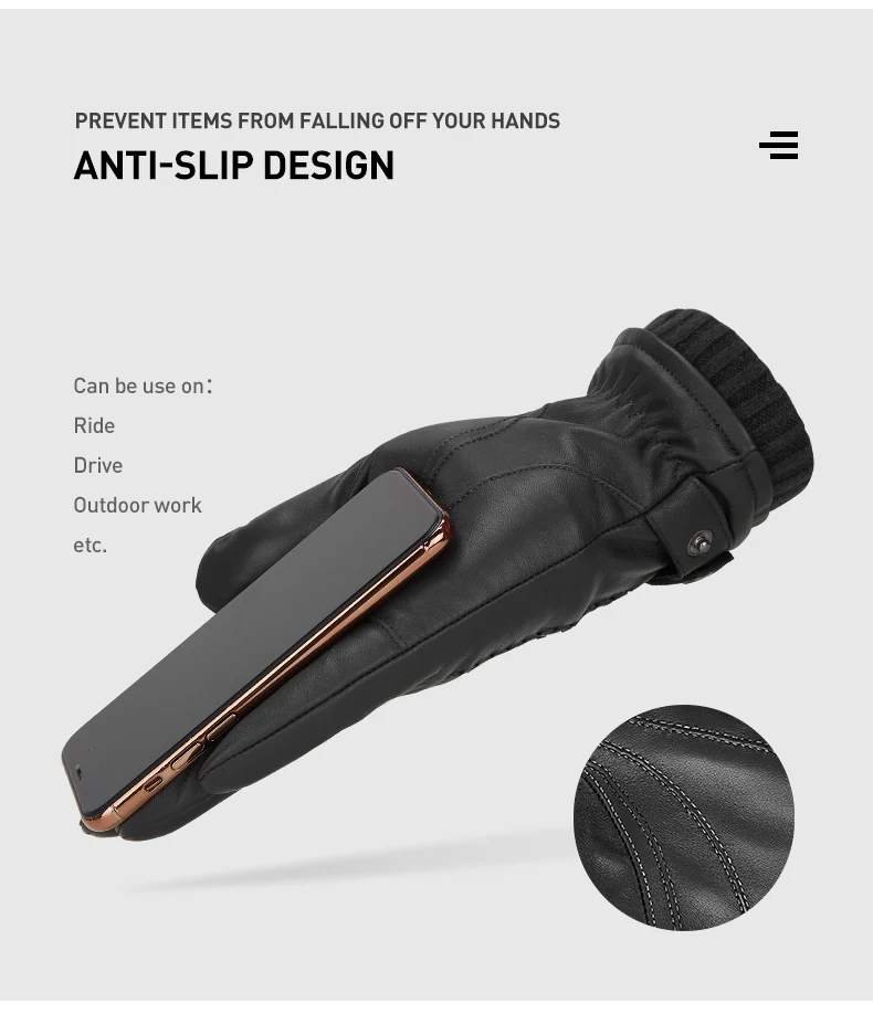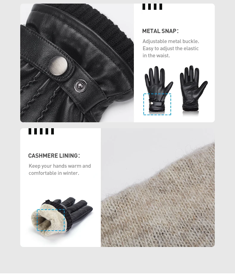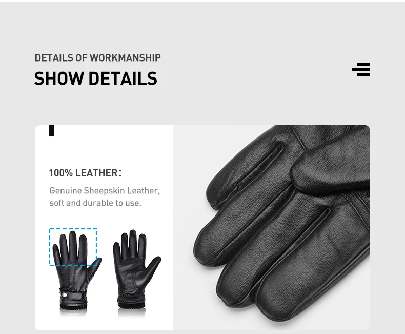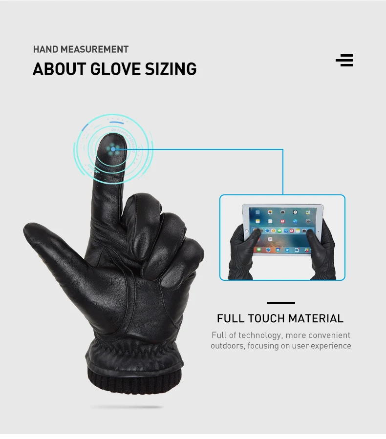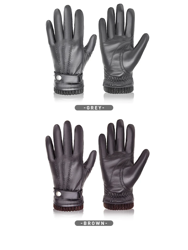 BISONDENIM New Men's Genuine Sheepskin Gloves Full Finger Touch Screen Gloves Winter Warm Fashion Business Multiple Size Options