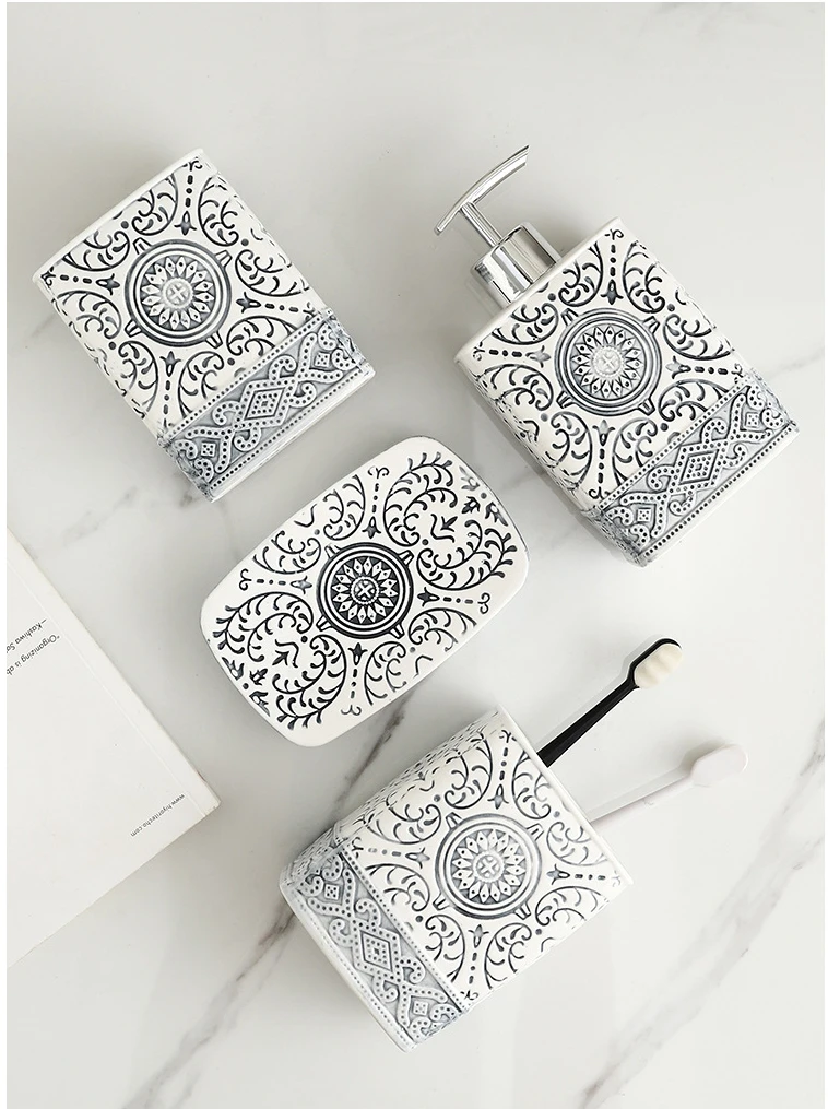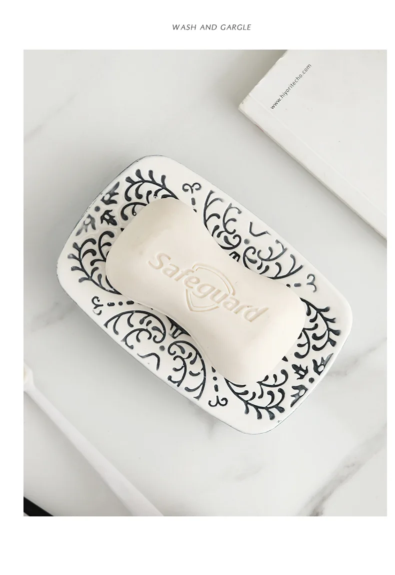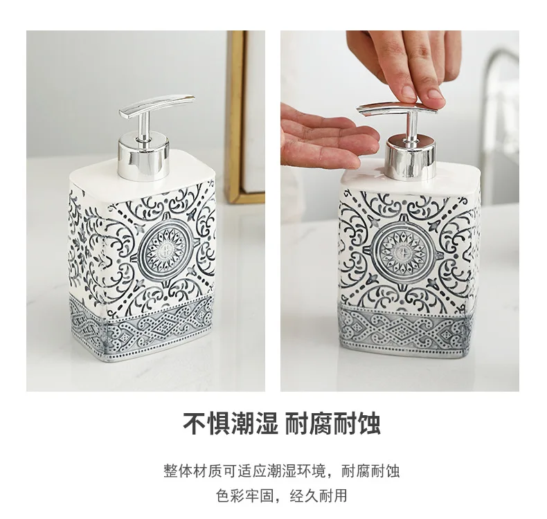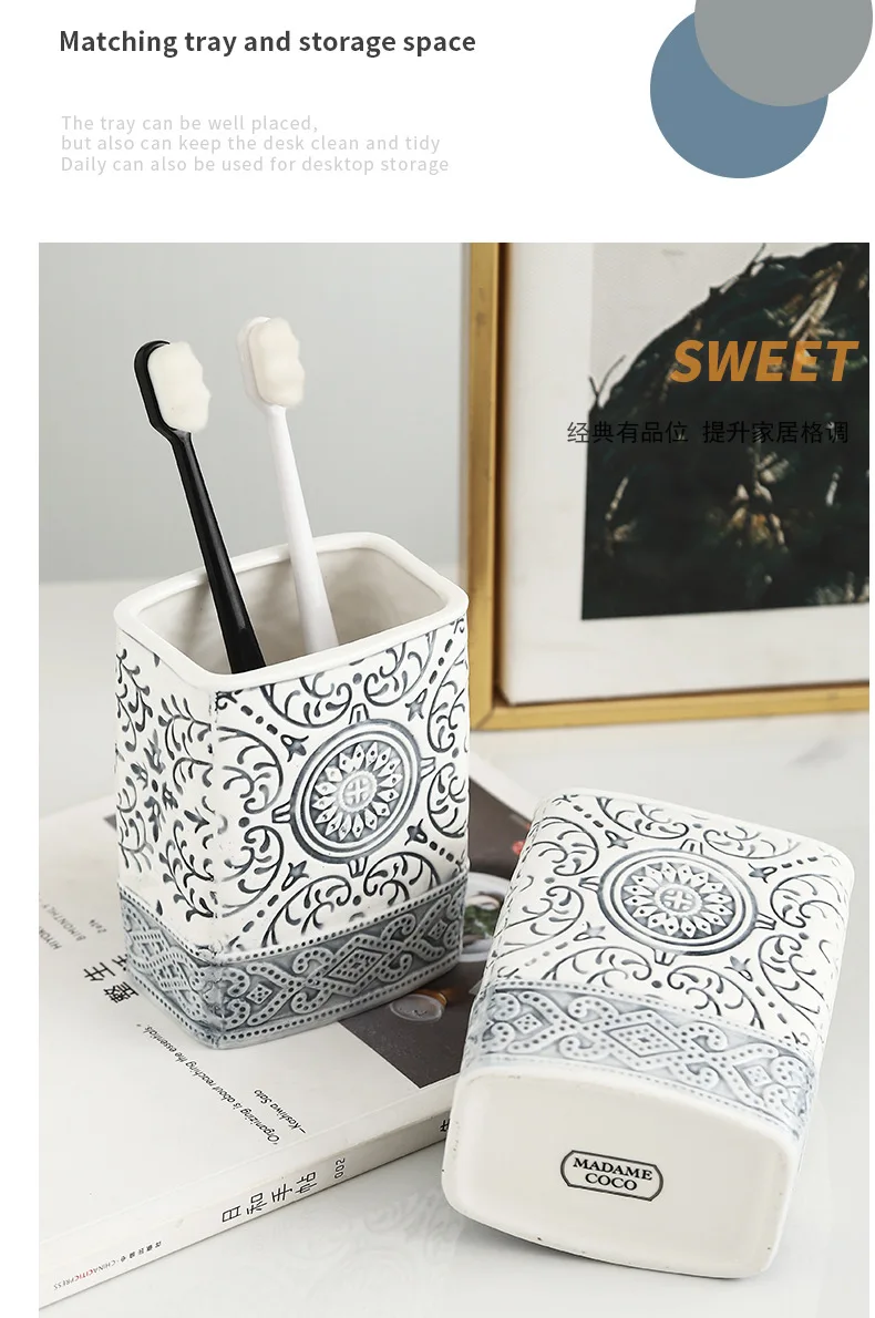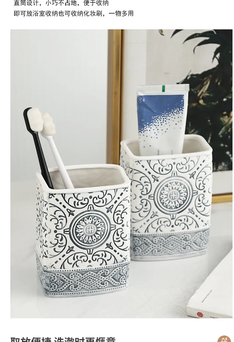 Bohemian ceramic bathroom group square lotion bottle high value mouthwash cup personalized toothbrush holder