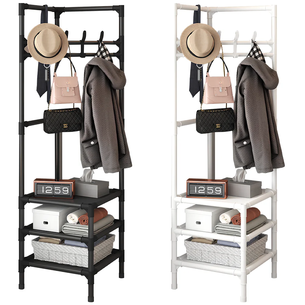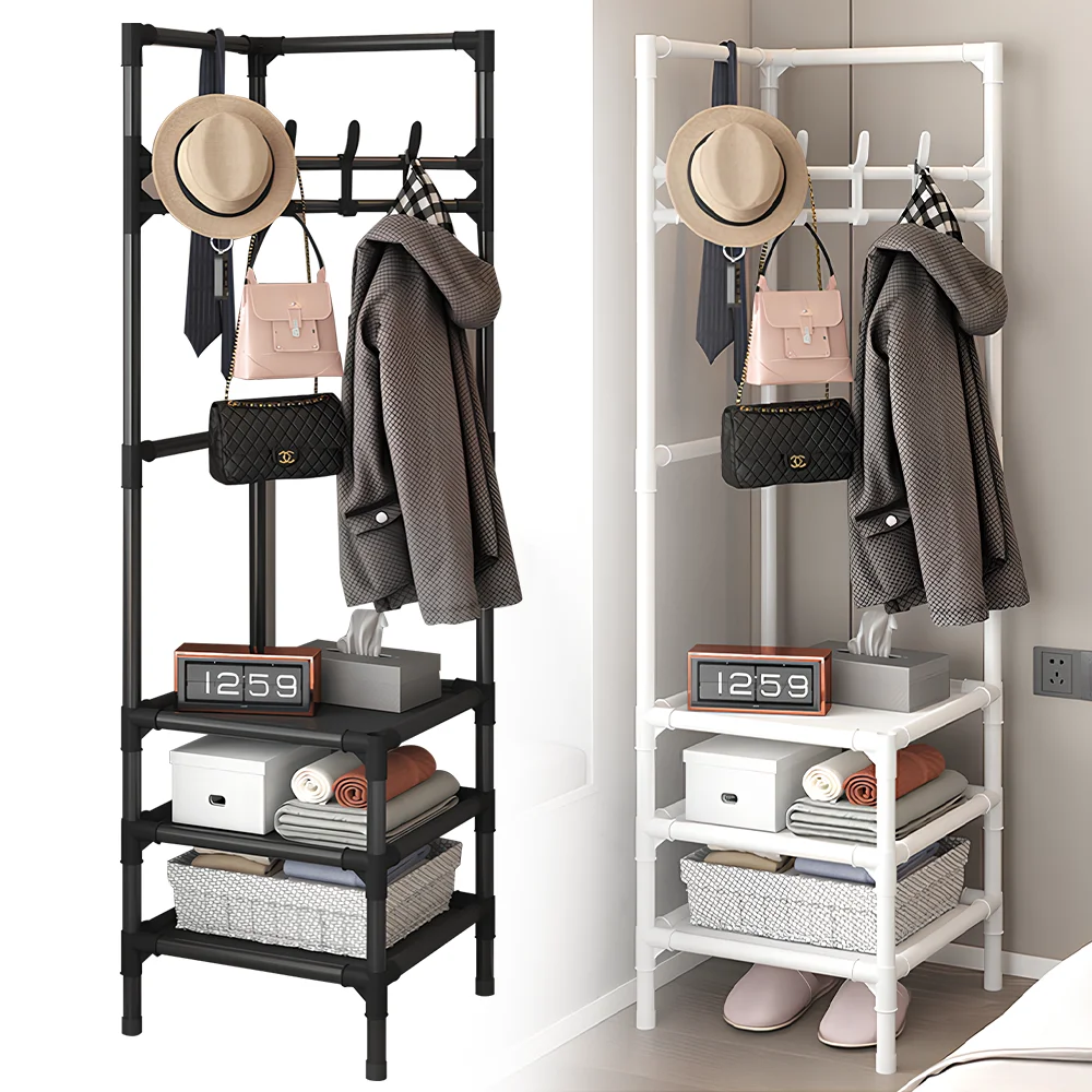 Clothes Rack Wall Corner Clothes Rack Modern Household Floor Standing Hangers for Clothes Rack with Storage Multi-level Shoe Rac