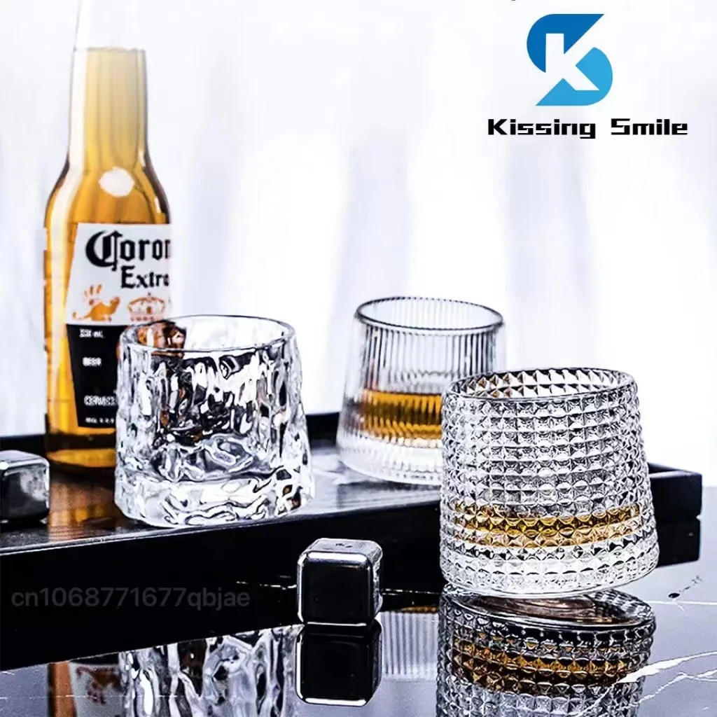 Creative Whiskey Glasses Durable Spinning Glassware Cocktails Wine Brandy Cup Water Juice Tea Mug Party Drinking Glass Tumbler