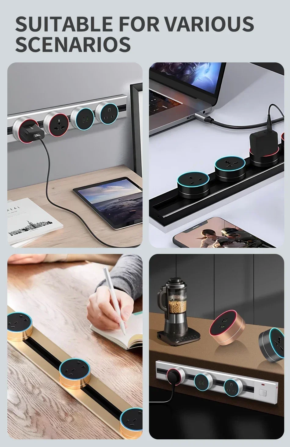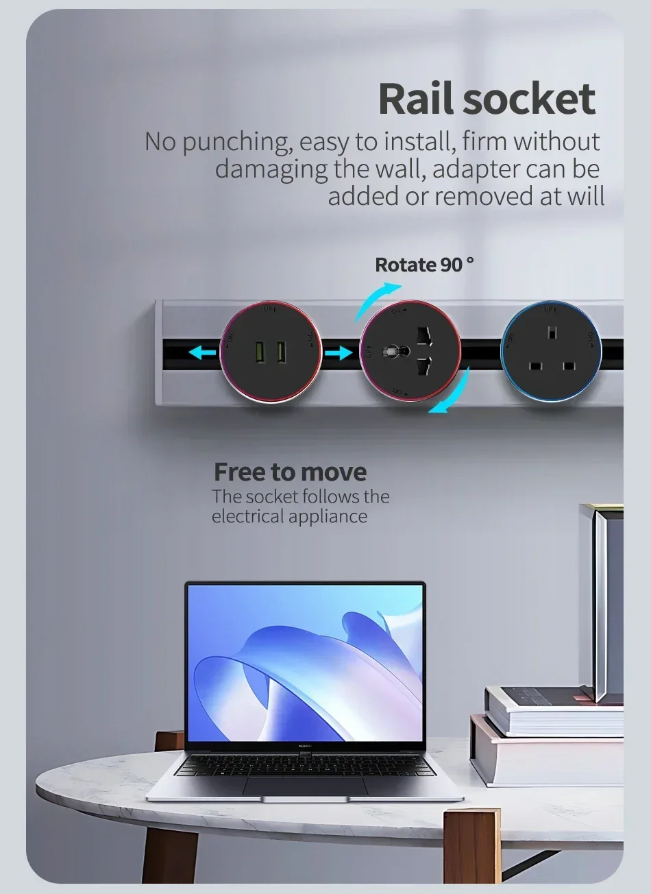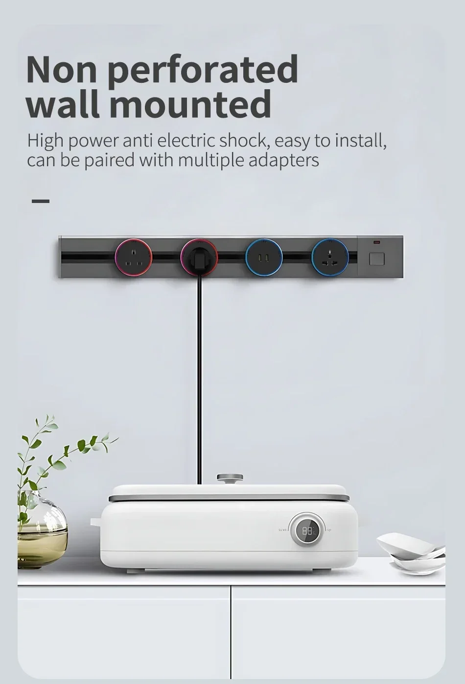 Enchufes móviles montados en la pared, Riel de enchufe de pista moderno, potencia de electrodomésticos de alta gama, puertos USB
