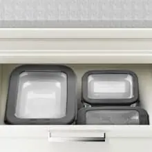 Space SavingThe containers nest inside of each other and keep a low profile to conserve and save the most space in cabinets and pantries. |