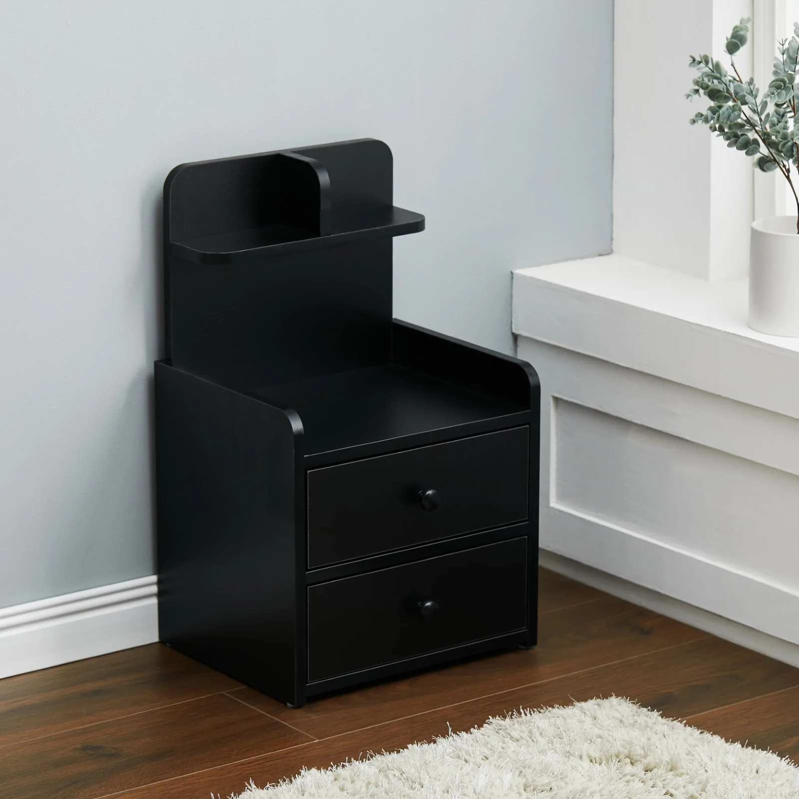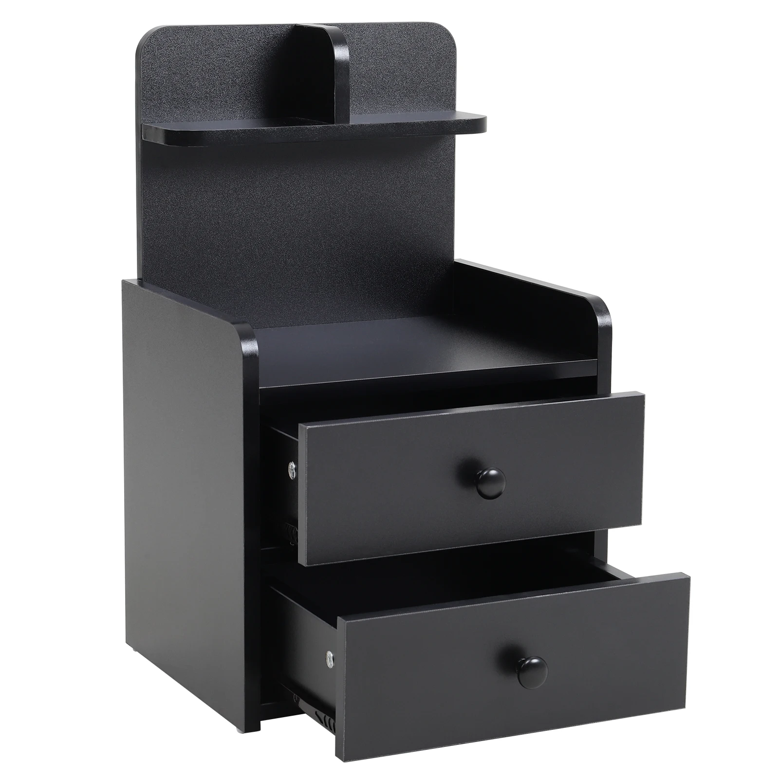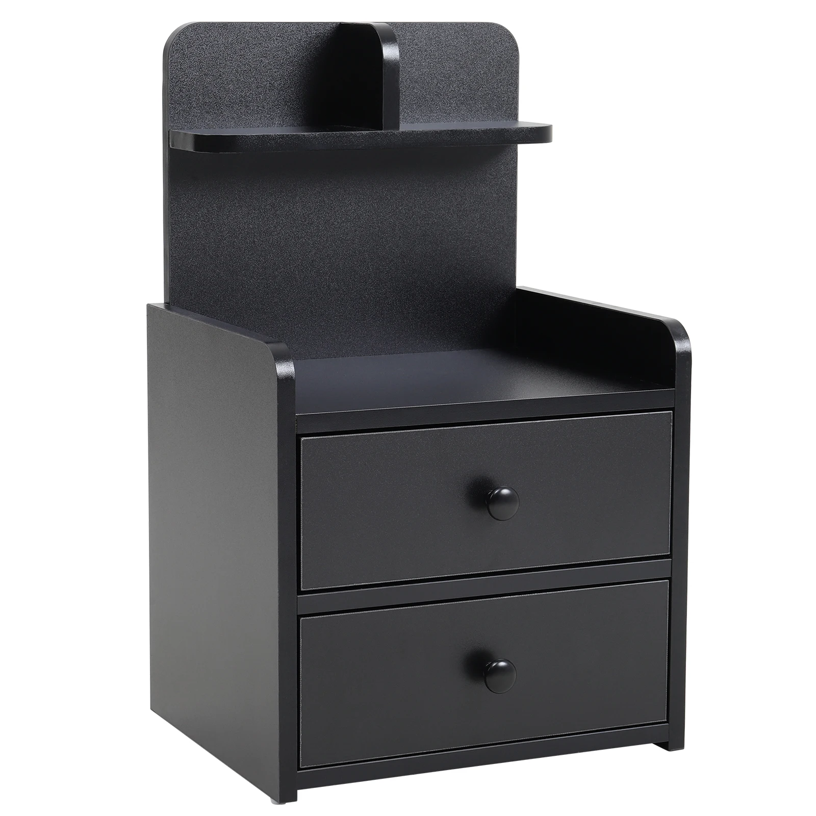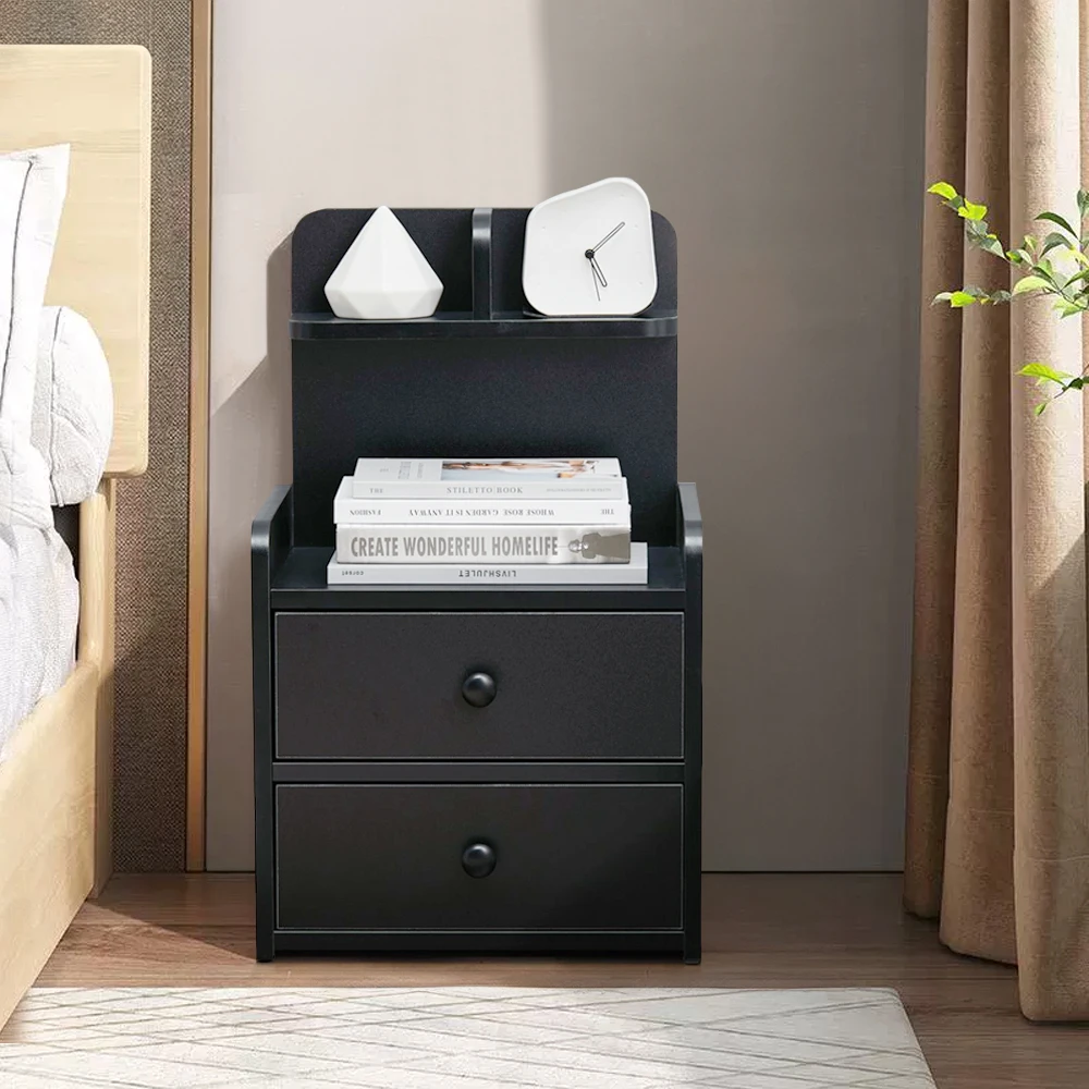 Haodirect Modern Black Double Drawer Nightstand with Shelves Wooden Bedroom Drawer Chest