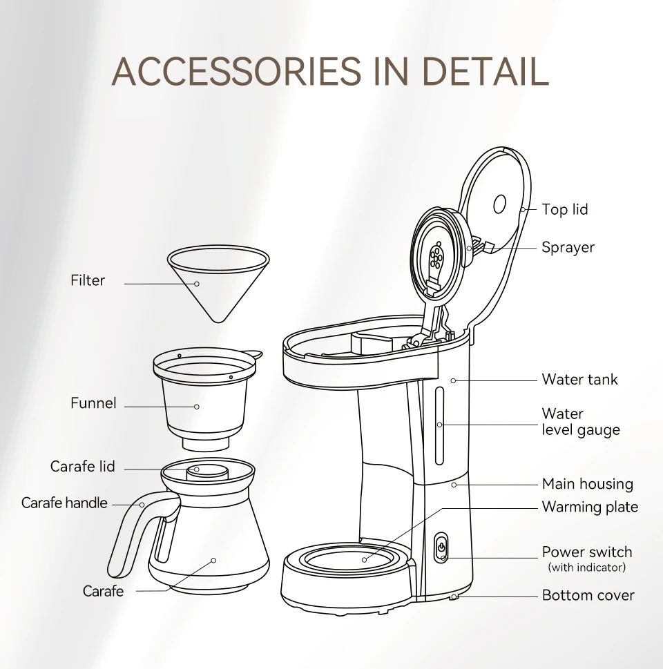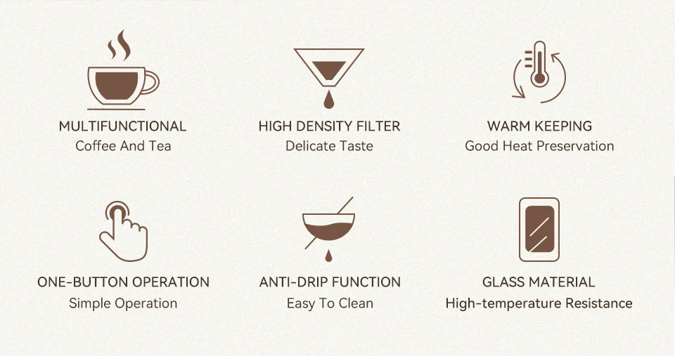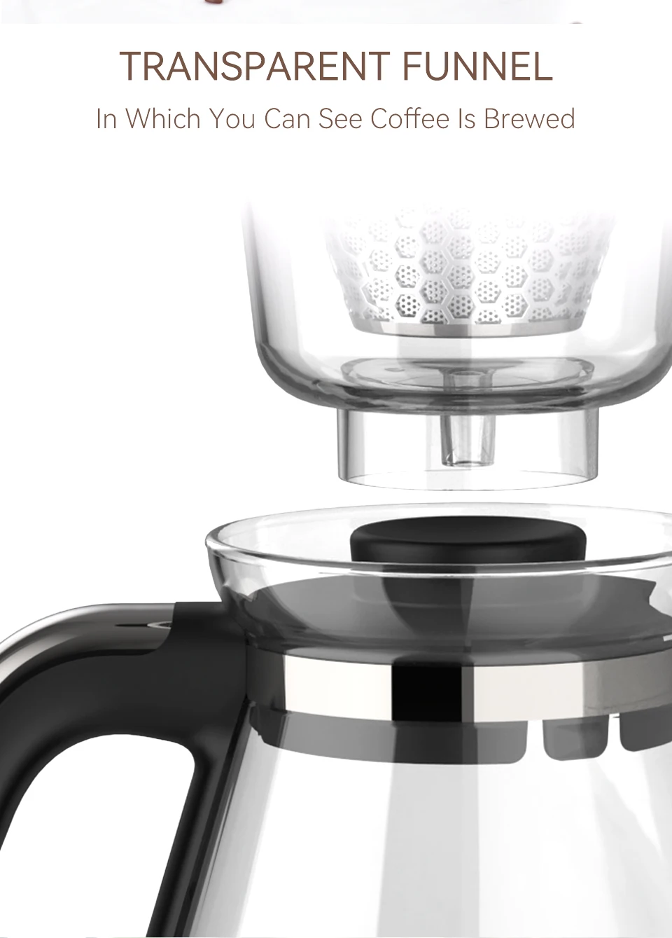 HiBREW 3 in 1 America Drip Coffee Machine Pour Over Coffee Maker Glass Teapot Hot Tea Maker 750ML H12