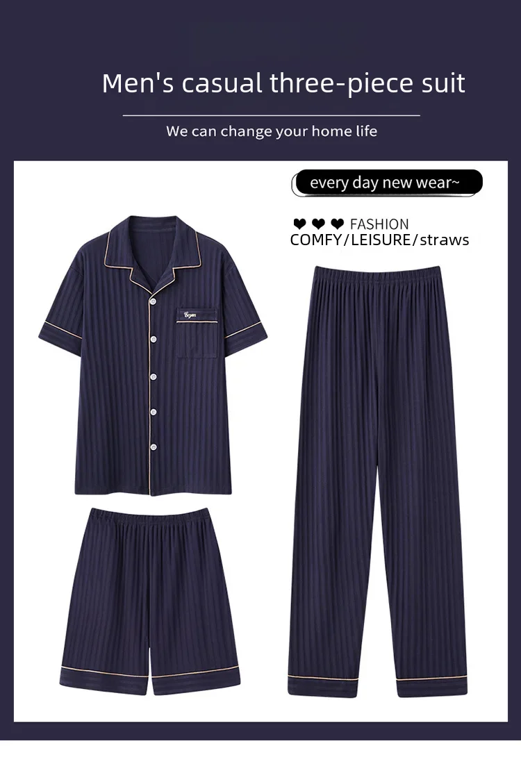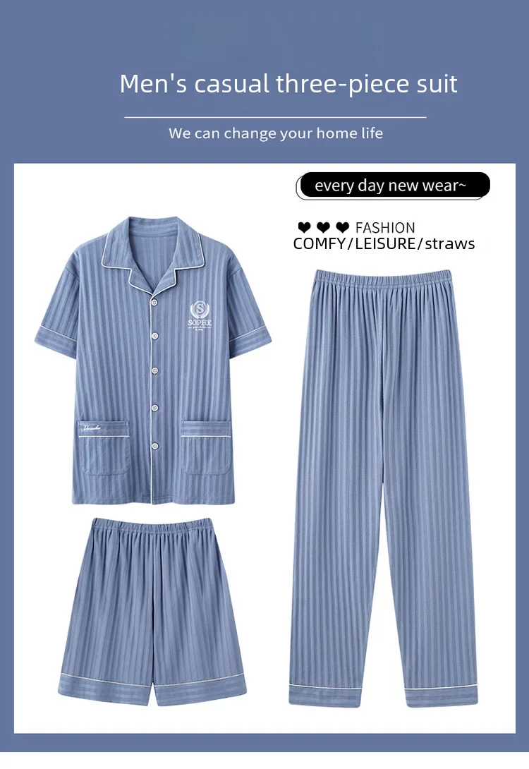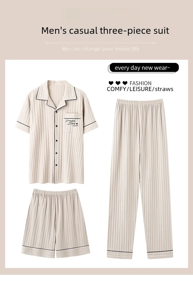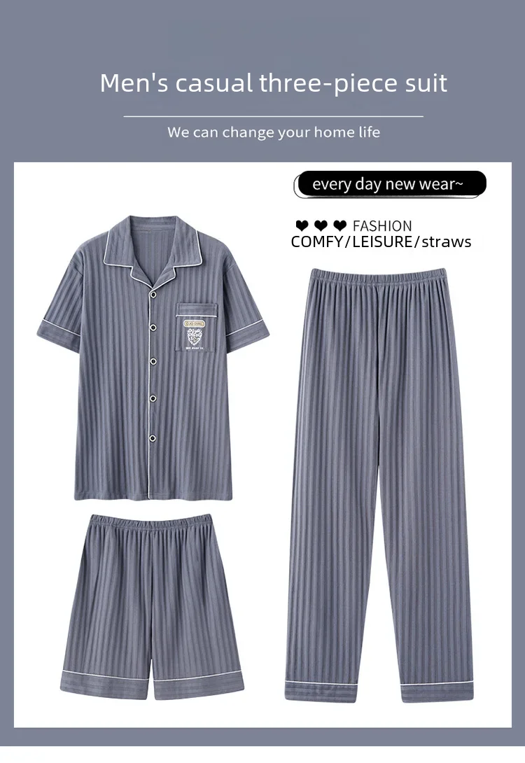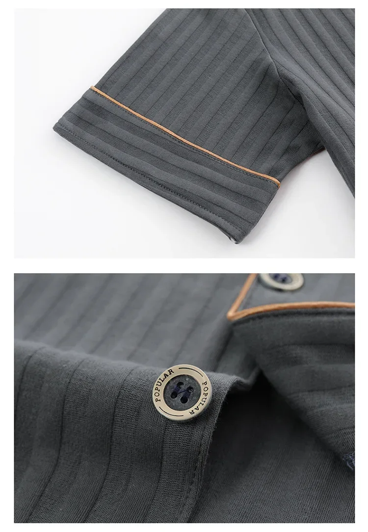 High-end Comfortable Cotton Men's Pajama Set Short Sleeve Summer Cardigan Style Suitable For Home Outdoor Wear