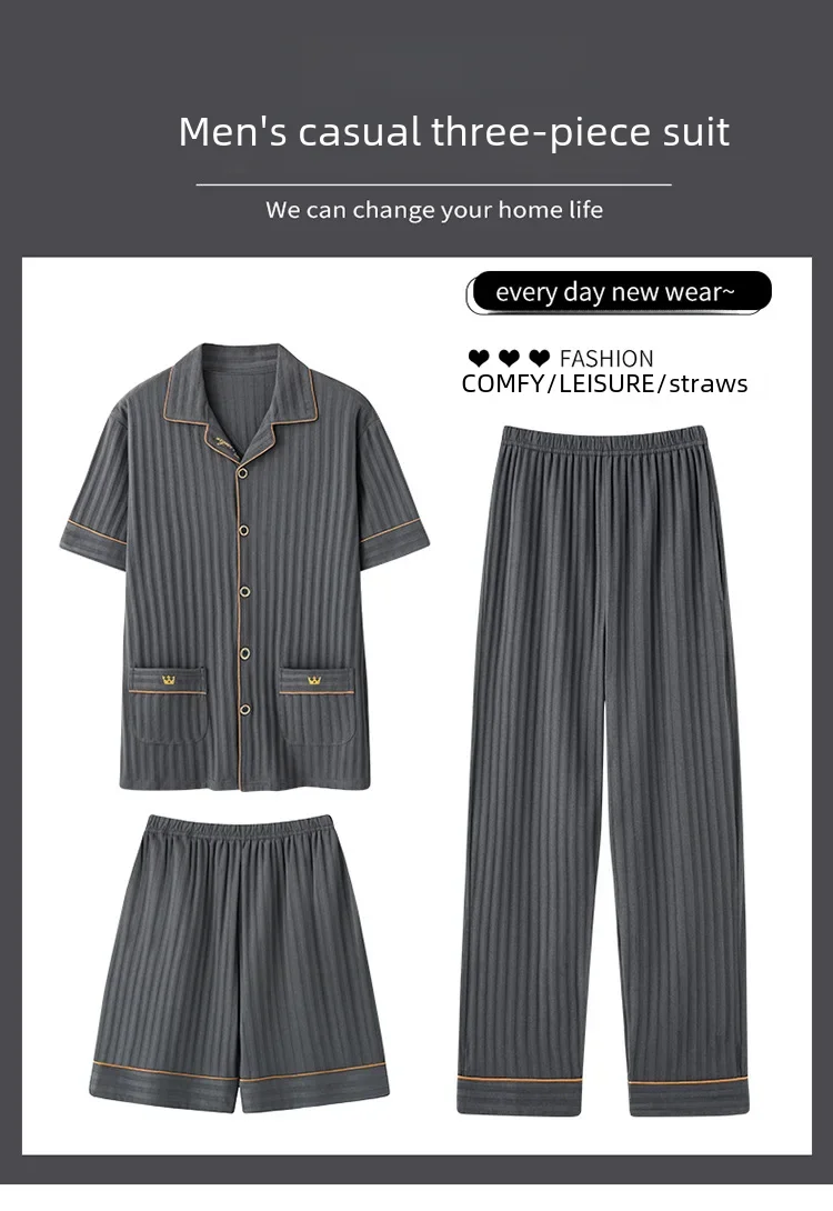 • Versatile Three-piece Set :This comprehensive three-piece set includes a short-sleeved cardigan and two bottoms, offering versatility and convenience for various weather conditions.