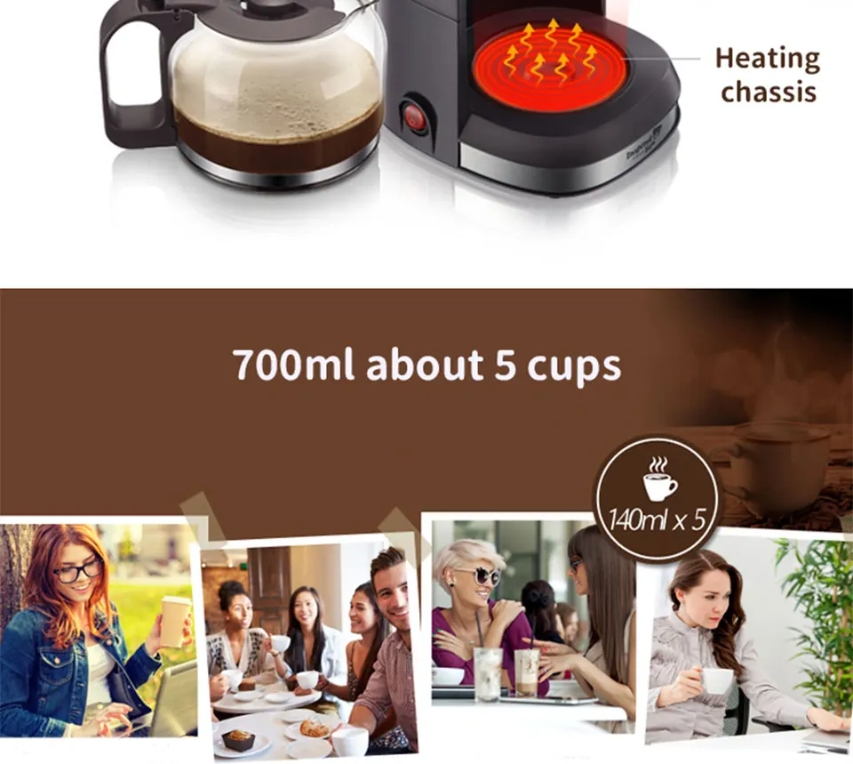 Household American-style extraction drip-type mini coffee machine 0.7L teapot glass bottle can keep warm can make scented tea