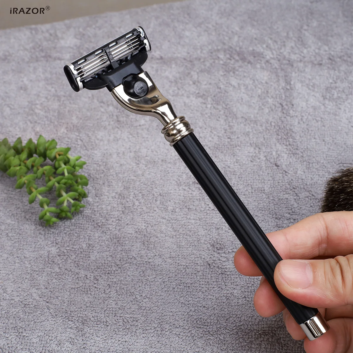 iRAZOR Classic Triple Blade 3-Layer Mach 3 Men's Beard Shaving Safety Razor Hair Removal Face Wet Handle Shaver Gift for Father