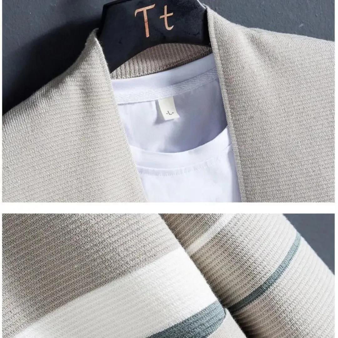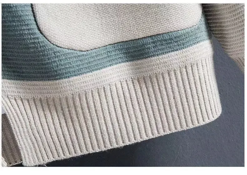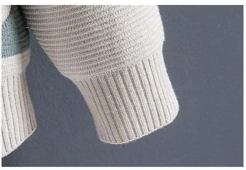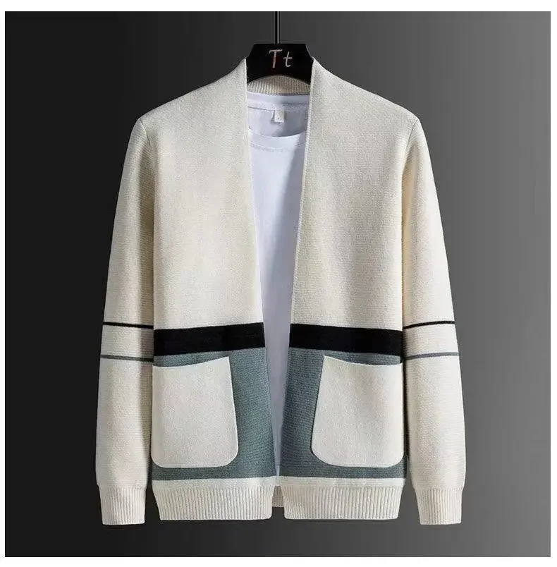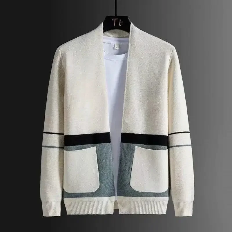 Korean Fashion Spring Autumn New Cardigan Sweaters Coats Men's V-Neck Contrast Color Pockets Loose Long Sleeve Knitted Jackets