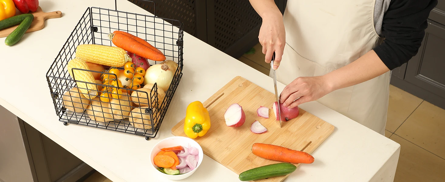 Use As a Cutting Board - The bamboo top can be used as a chopping board. You can use it directly on the basket or take it down. The bamboo top is easy to install and remove.