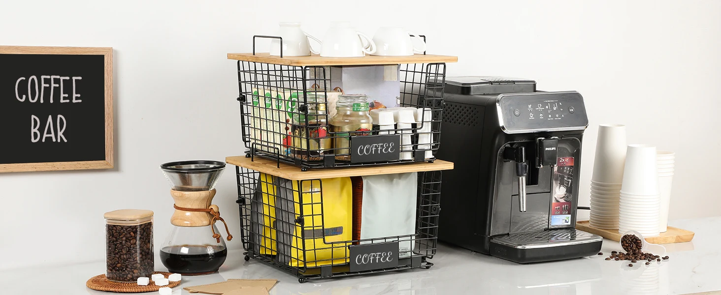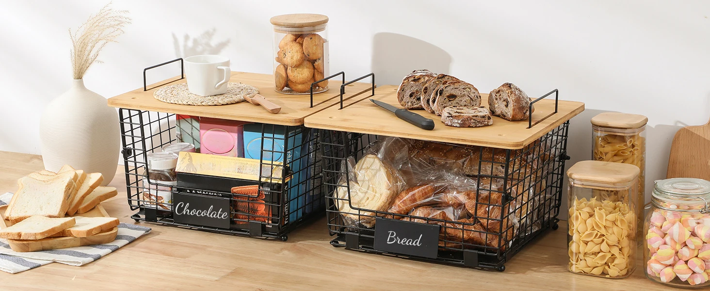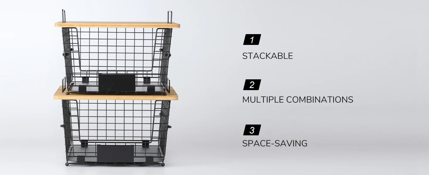 ★Premium Material - The top is made of 100% natural bamboo, BPA-FREE. The wire basket is coated with food-safe powder coating for long-lasting beauty, will never fall off and rust.