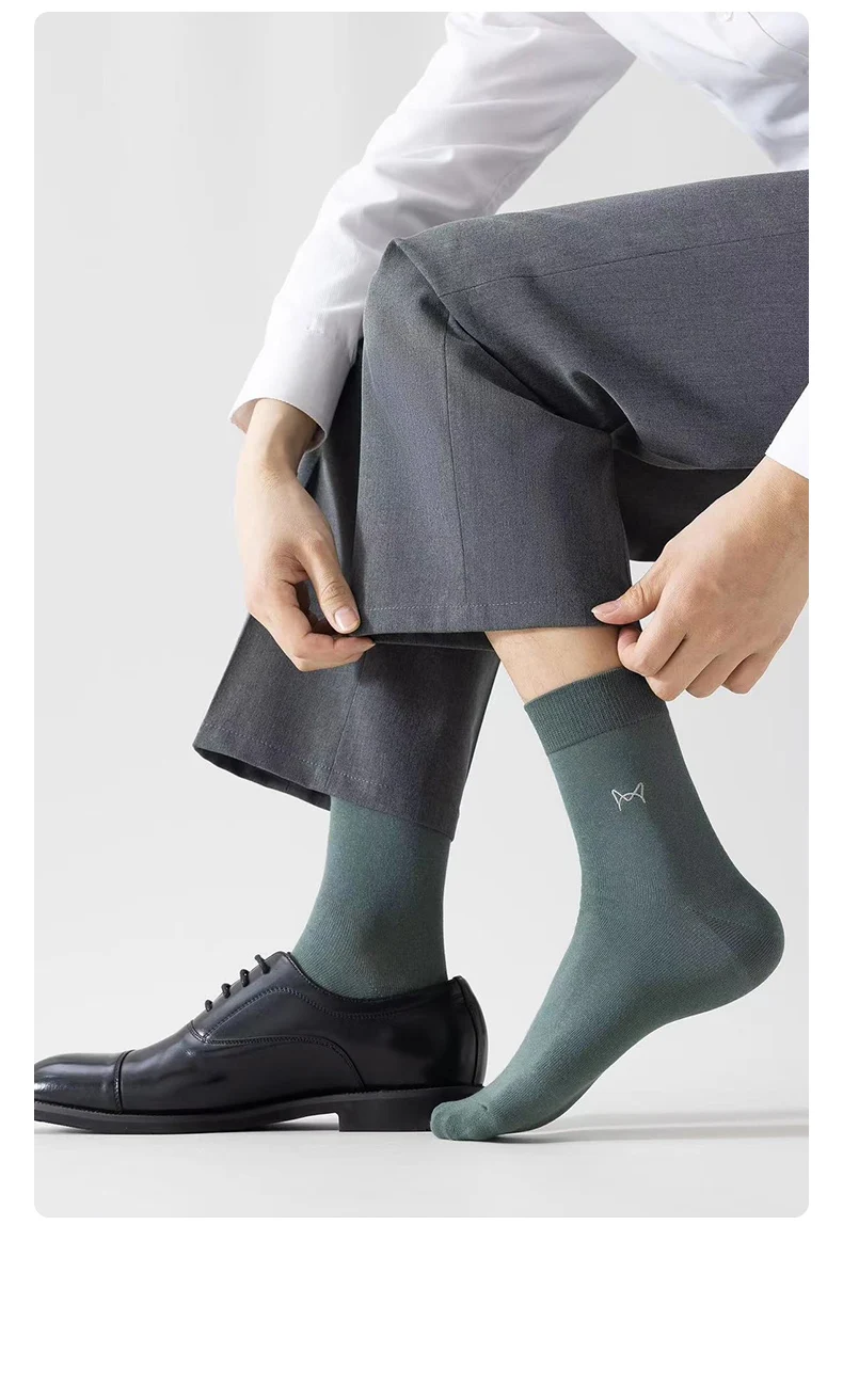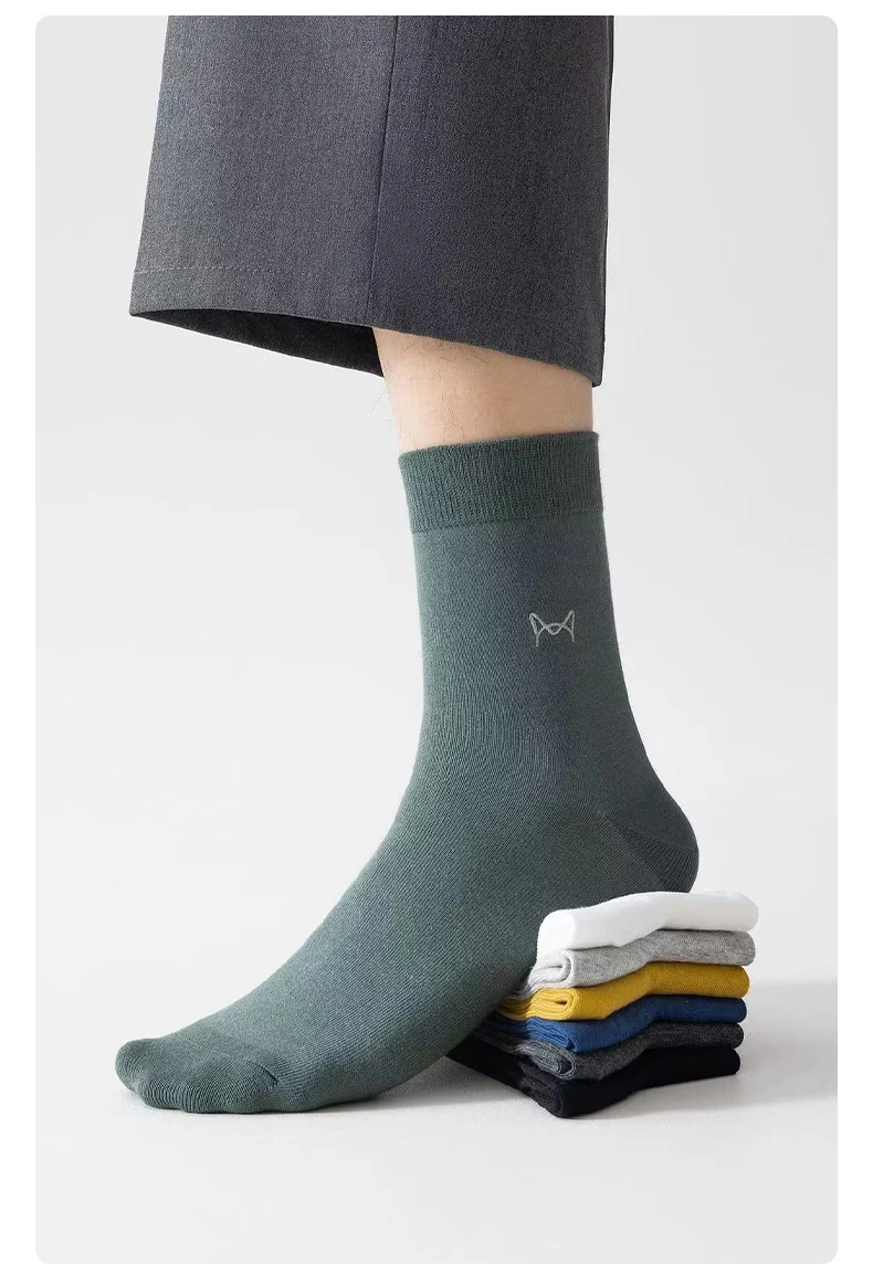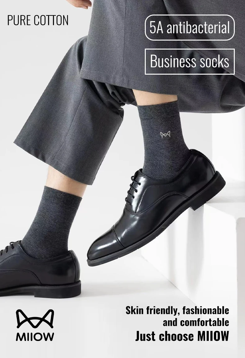 MiiOW 100% Pure Cotton Socks Men Business Dress Long Sock Antibacterial Anti Odor Crew Socks Solid Color Breathable Sport Sock