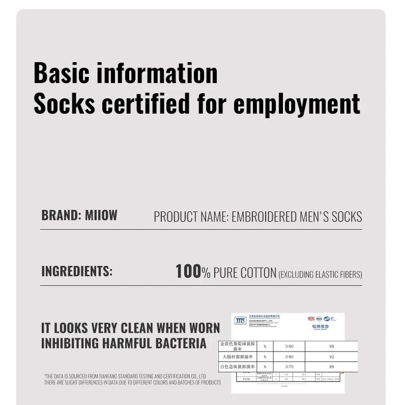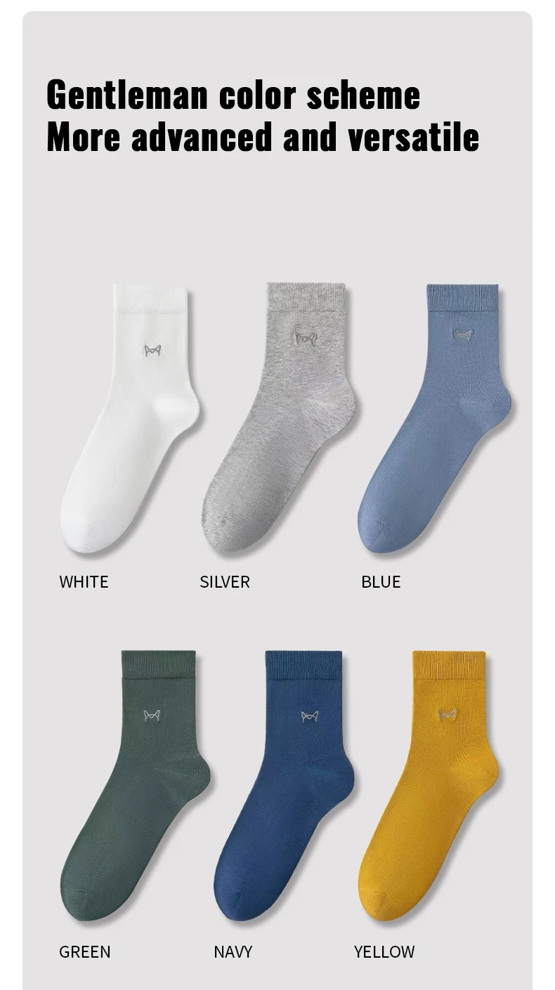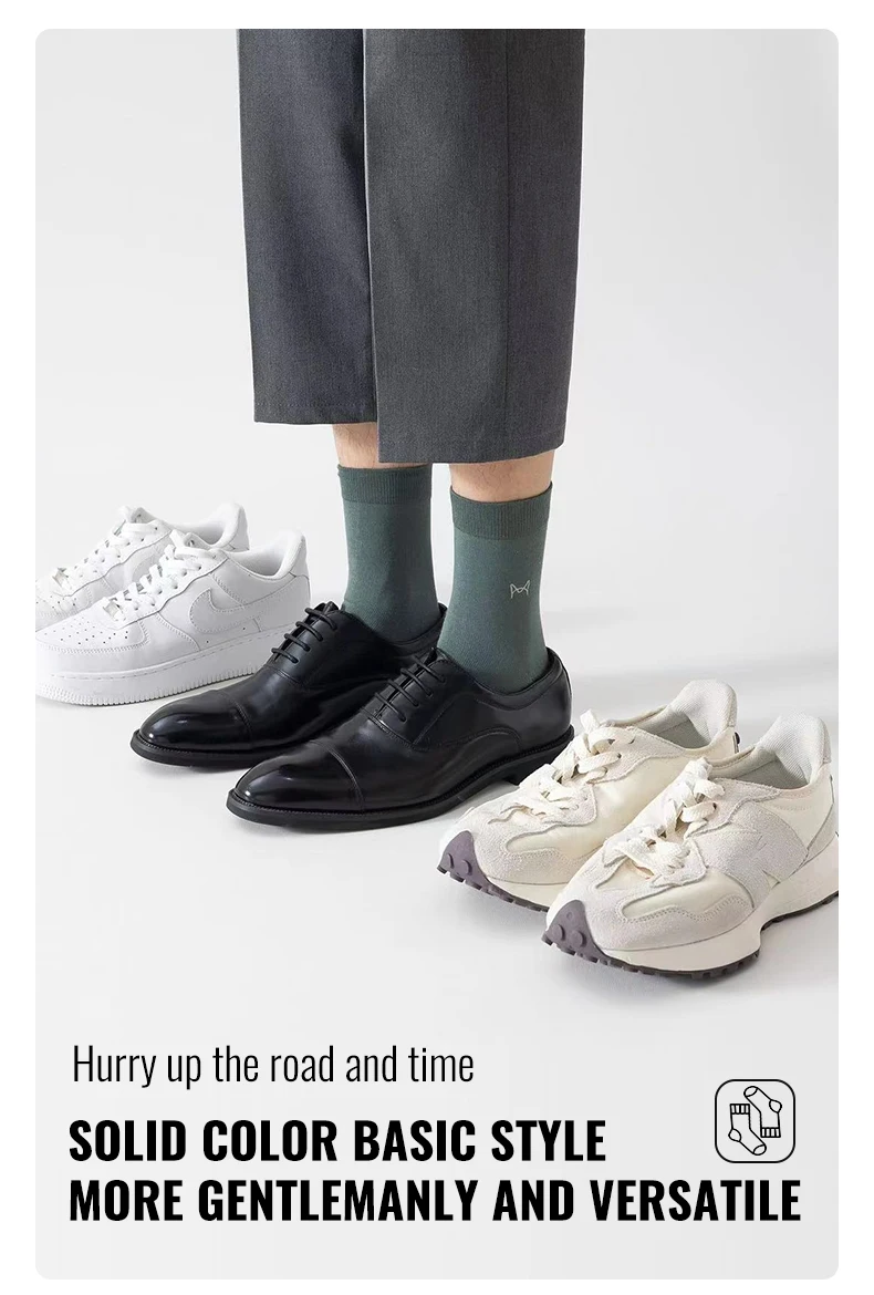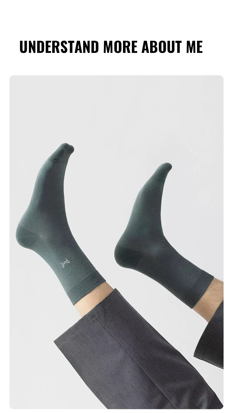 MiiOW 100% Pure Cotton Socks Men Business Dress Long Sock Antibacterial Anti Odor Crew Socks Solid Color Breathable Sport Sock