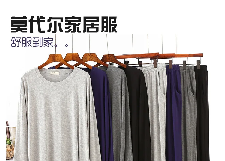 Modal Cotton Pajamas Suit Men Spring Autumn Long-sleeved Youth Middle-aged Loose Fit Plus Size Loungewear Thin Sleepwear Male
