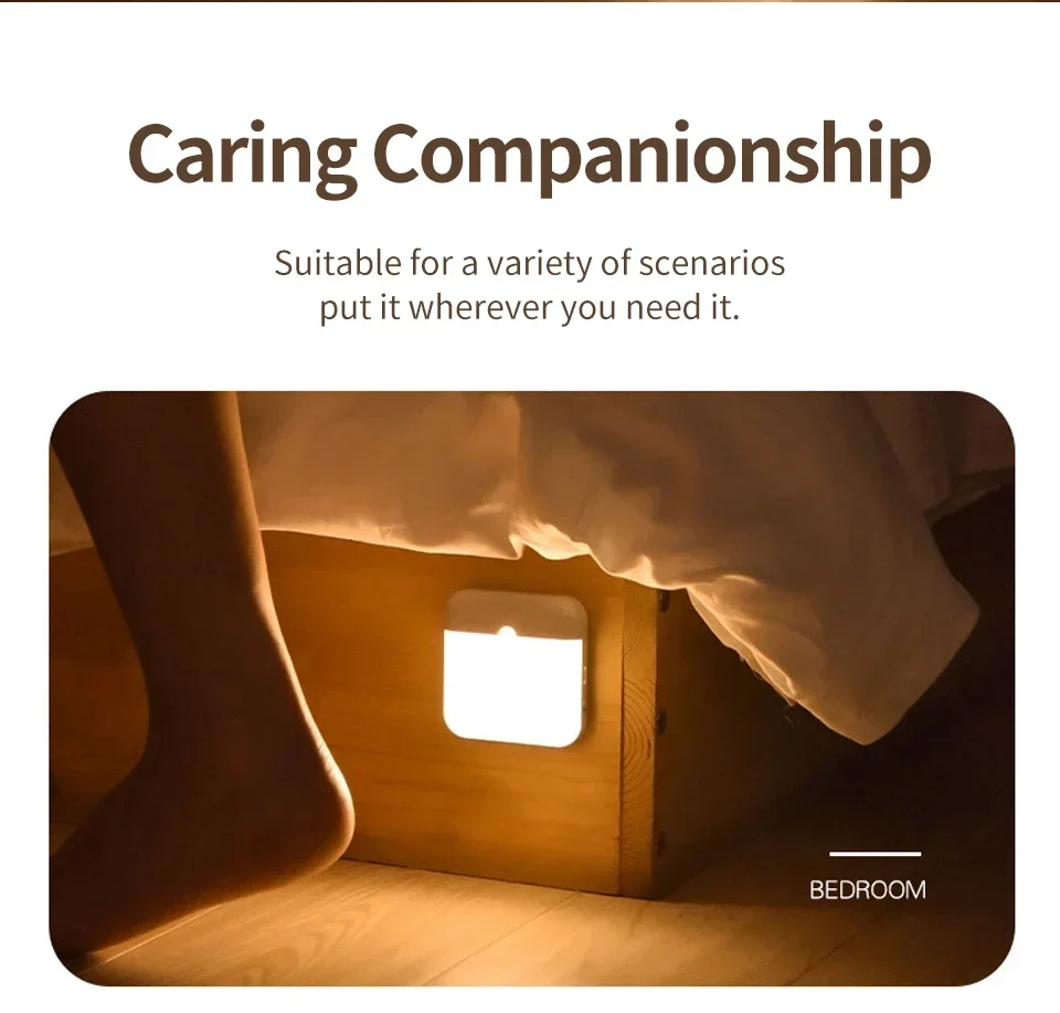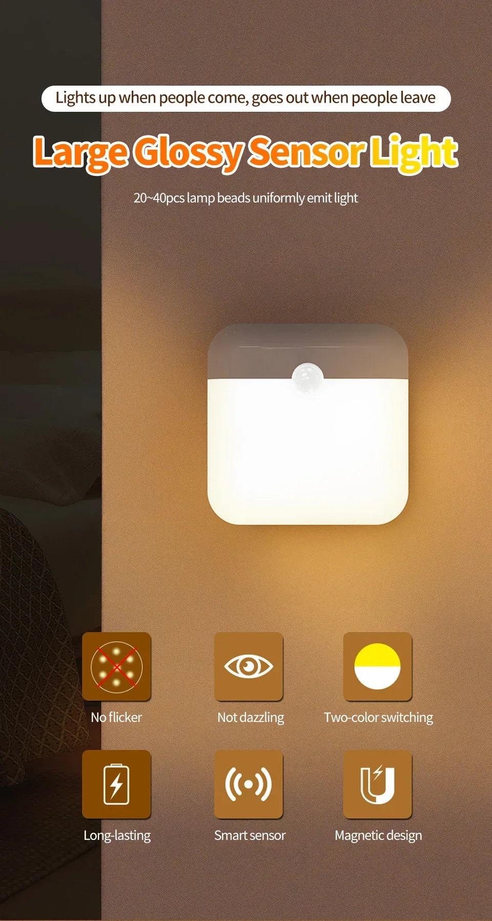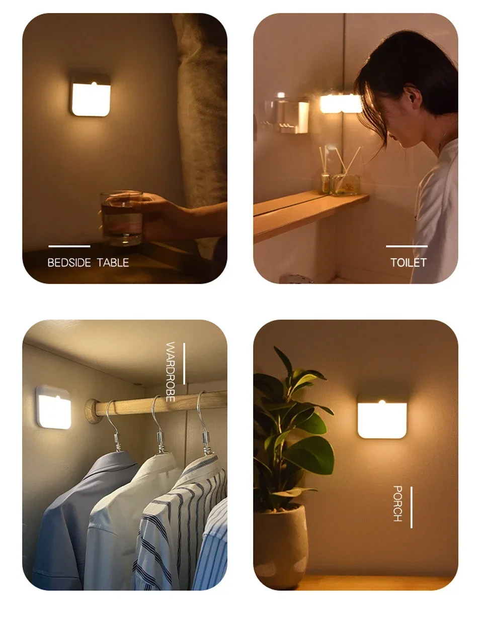 Motion Sensor Led Light Usb TYPE-C Charging Square Lamp For Stair Hallway Wardrobe Cupboard Kitchen Bedroom Lighting Night Light