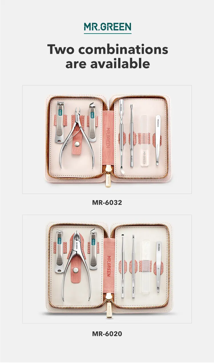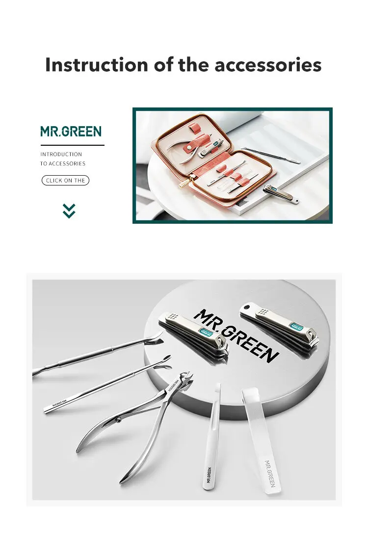 MR.GREEN Manicure Set Pedicure Sets Nail Clippers Tools Stainless Steel Professional Cuticle Cutter Travel Case Kit 7Pcs/Set For