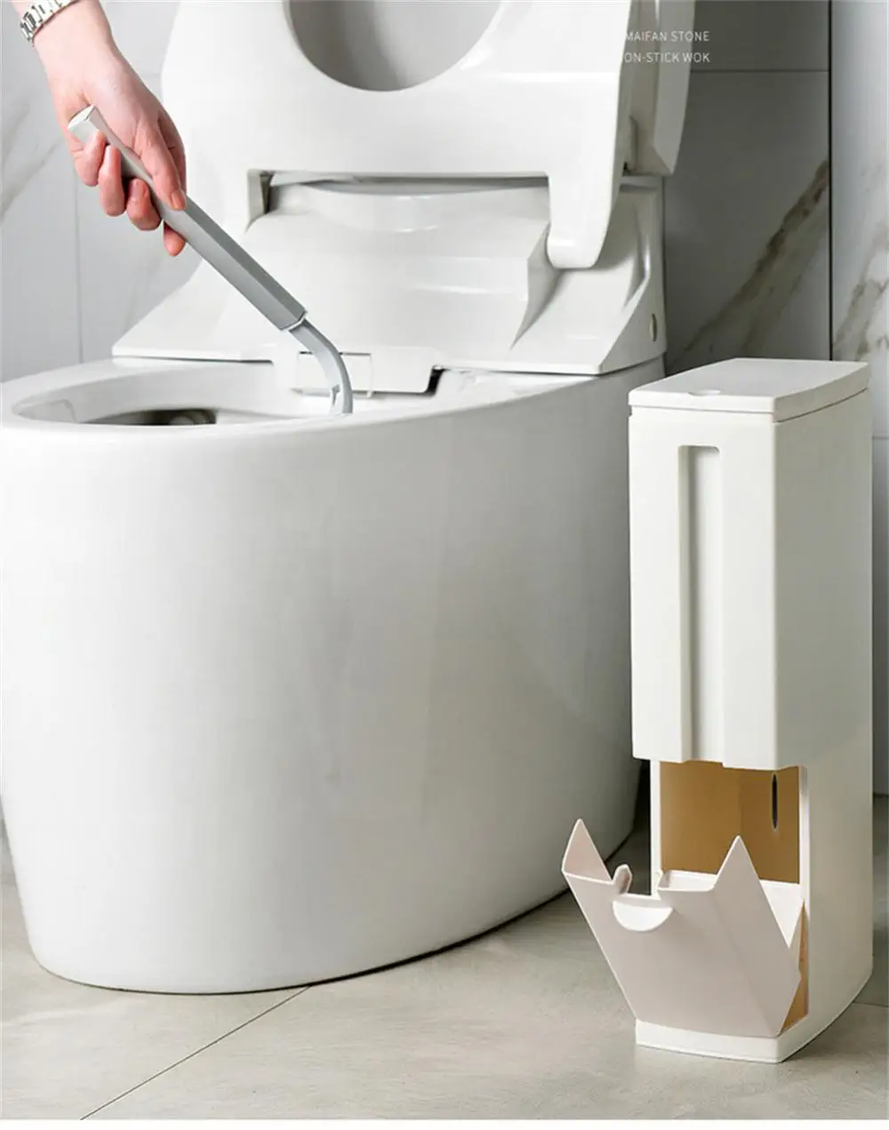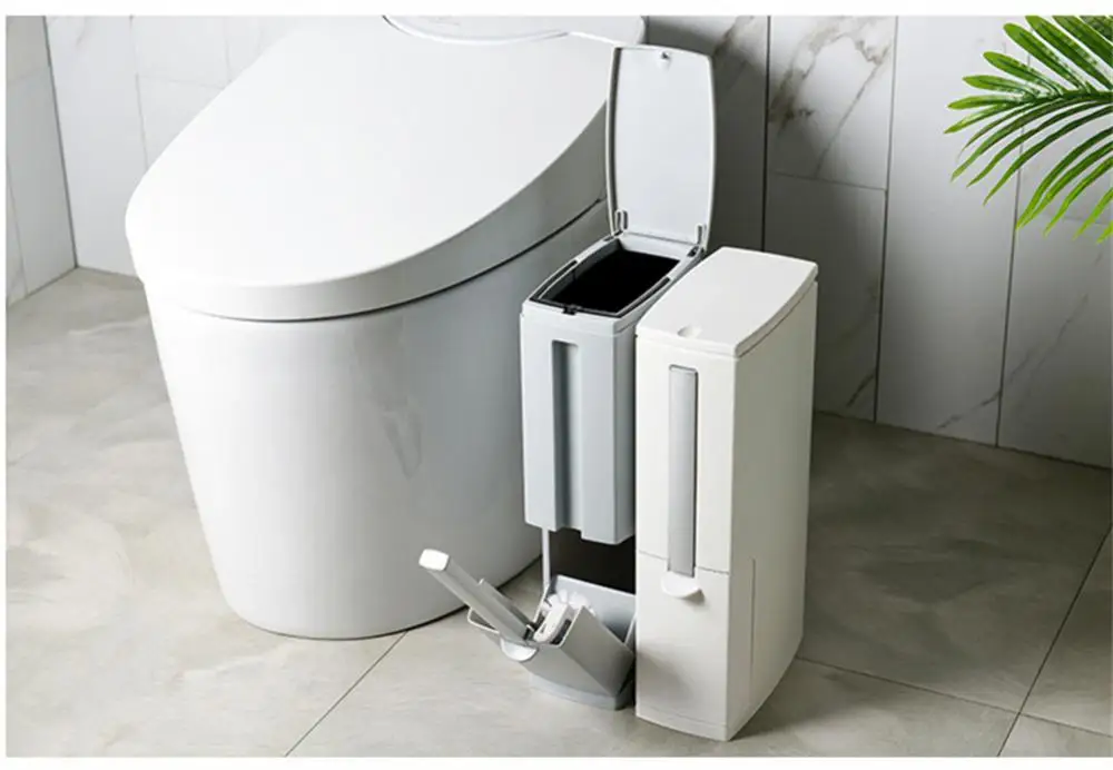 1.With toilet brush: trash can toilet brush 2 in 1 set, toilet brush can be folded and hidden in the bucket, saving storage space