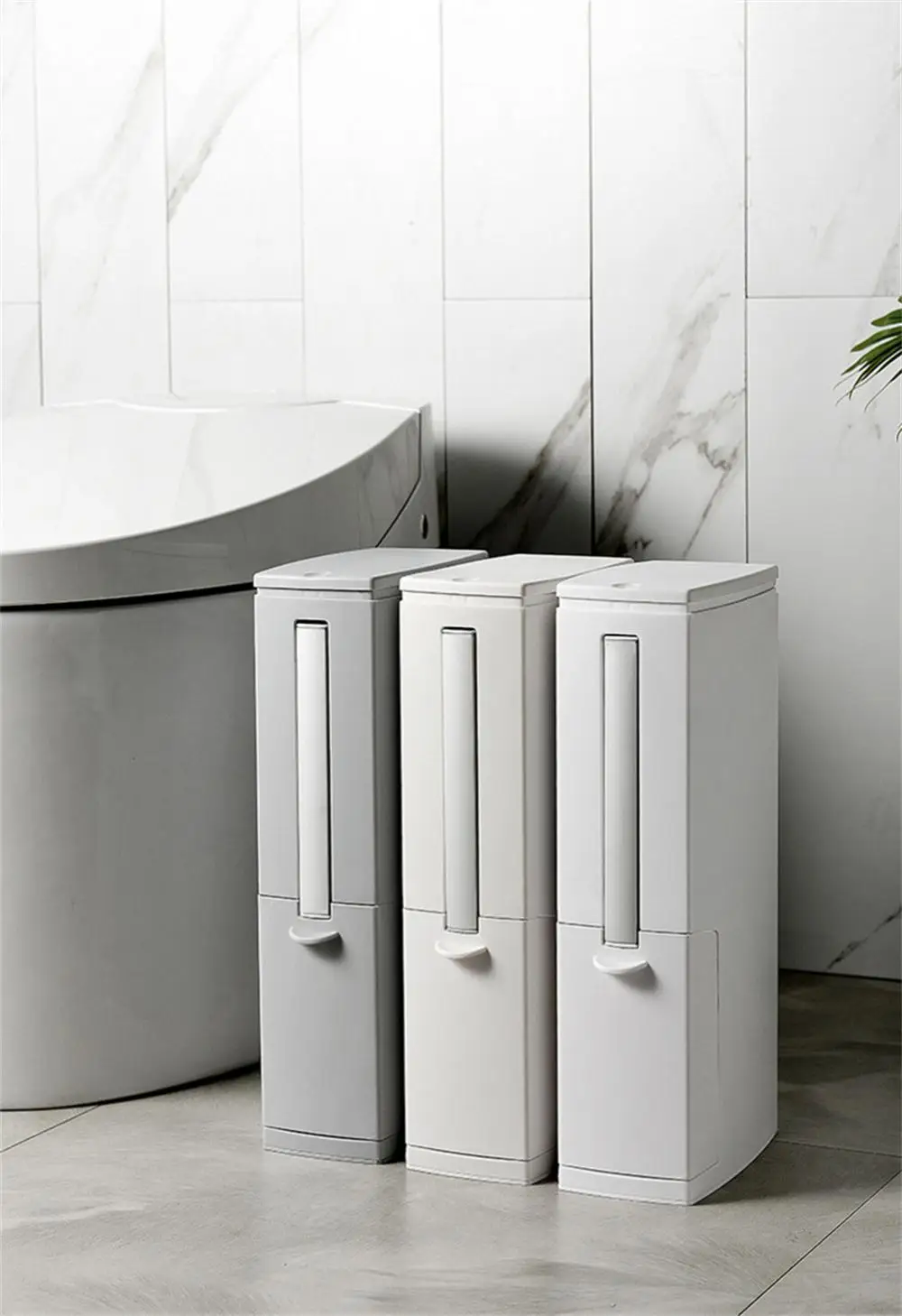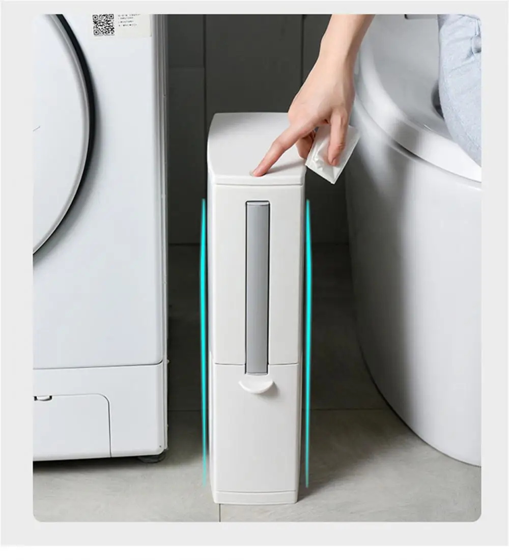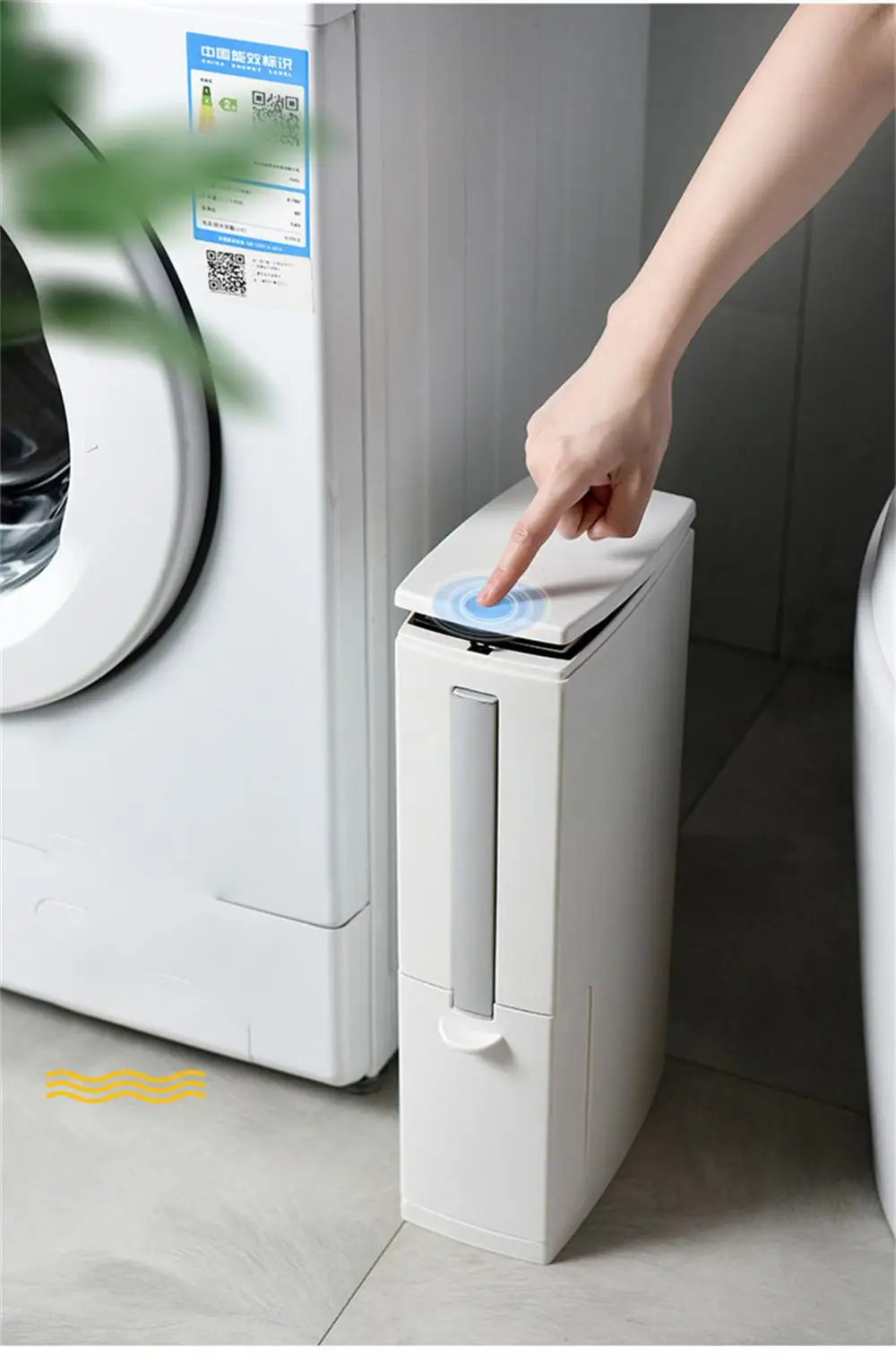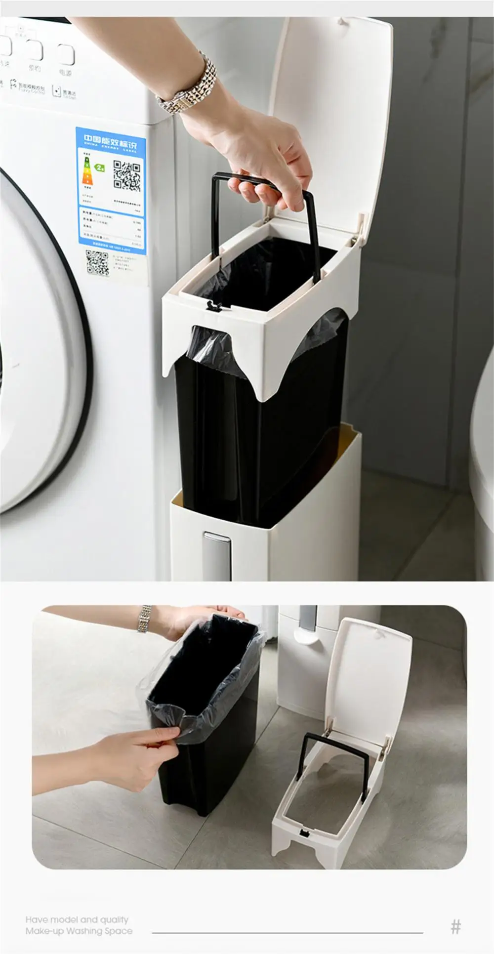 Narrow Trash Can Toilet Brush Set Bathroom Plastic Waste Bin Dustbin Kitchen Garbage Bucket Trash Bin Household Cleaning Tools