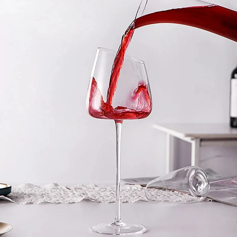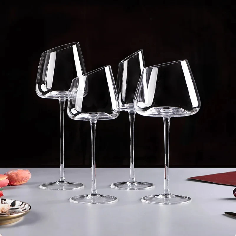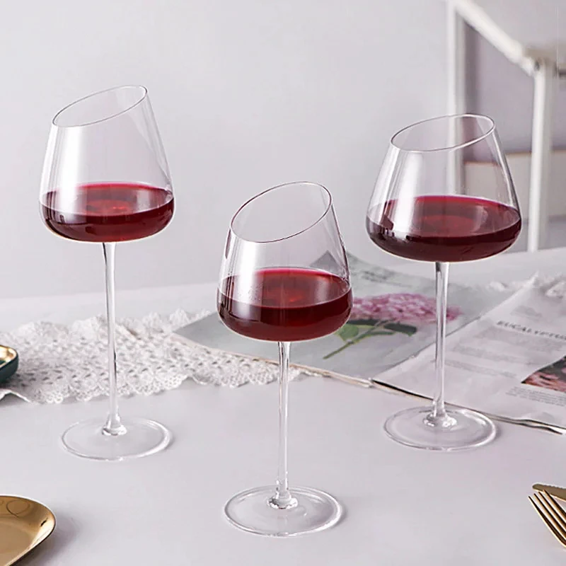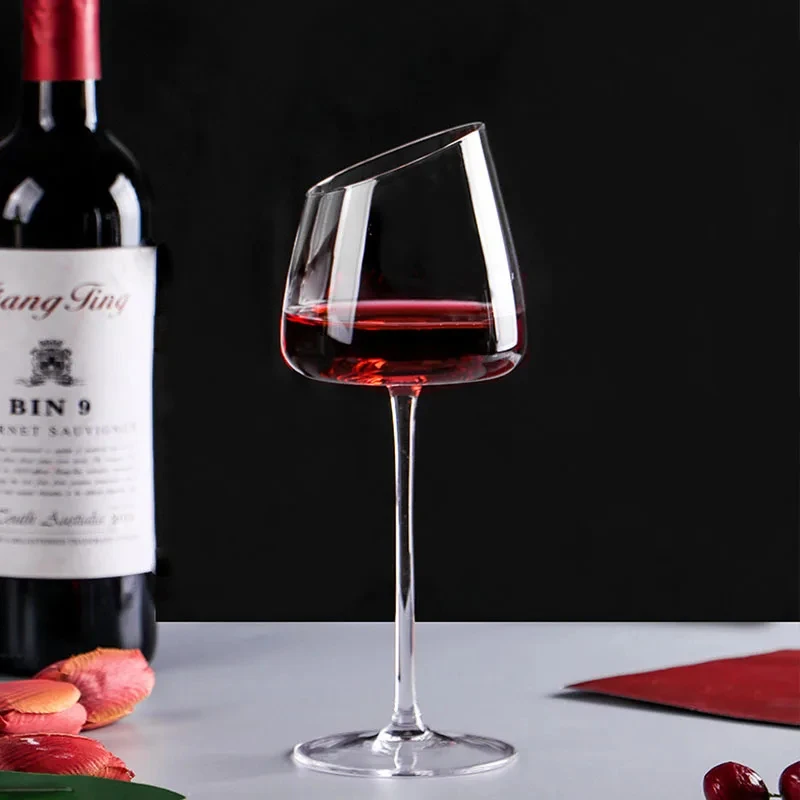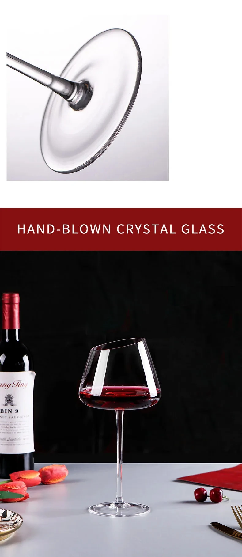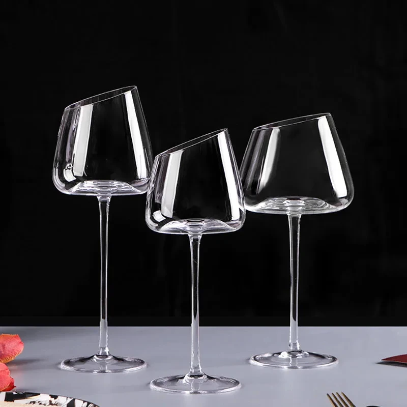 Oblique Long Stem Goblet Red Wine Glass Cup Kitchen Tool Champagne Glass Bordeaux Burgundy Wedding Party Gift Glassware