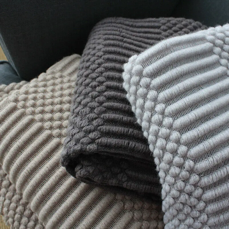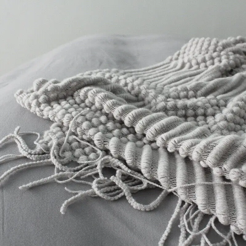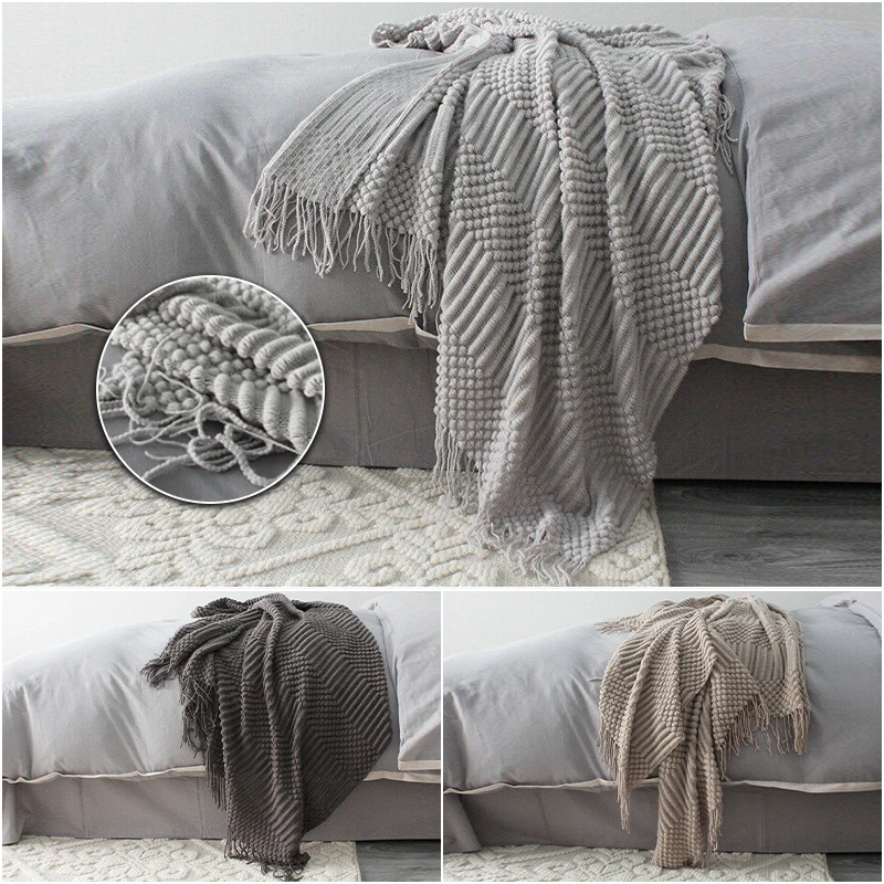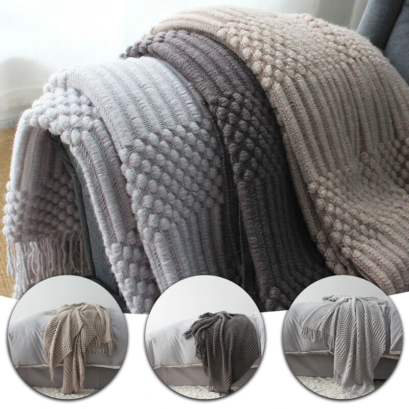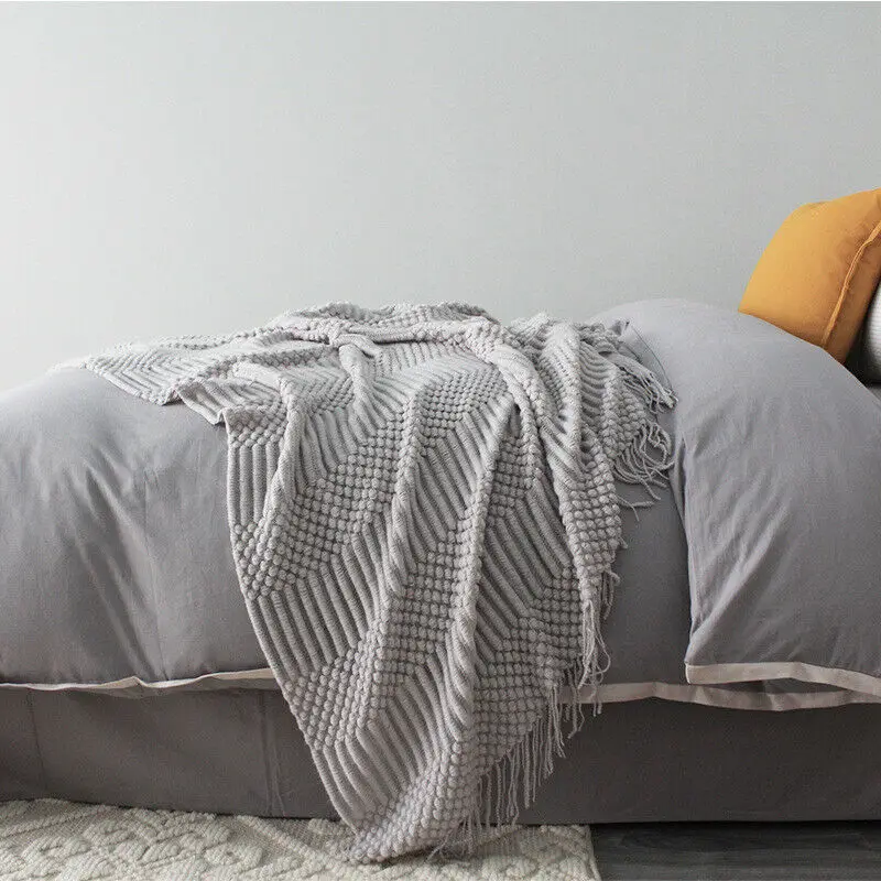 Plaid Knit Air Conditioner Cover Nap Blanket Comfortable Nordic Style Warm Tassel Solid Color Blankets For Beds Sofa