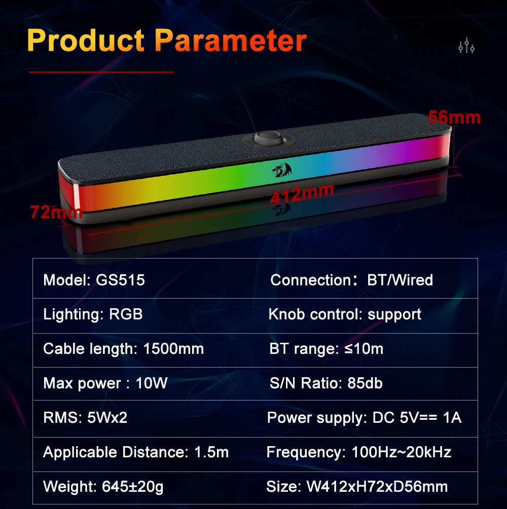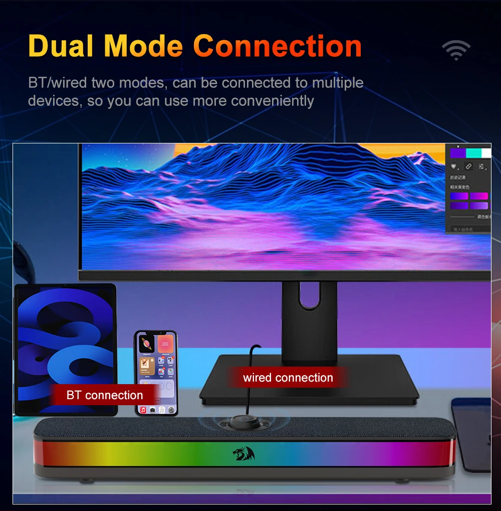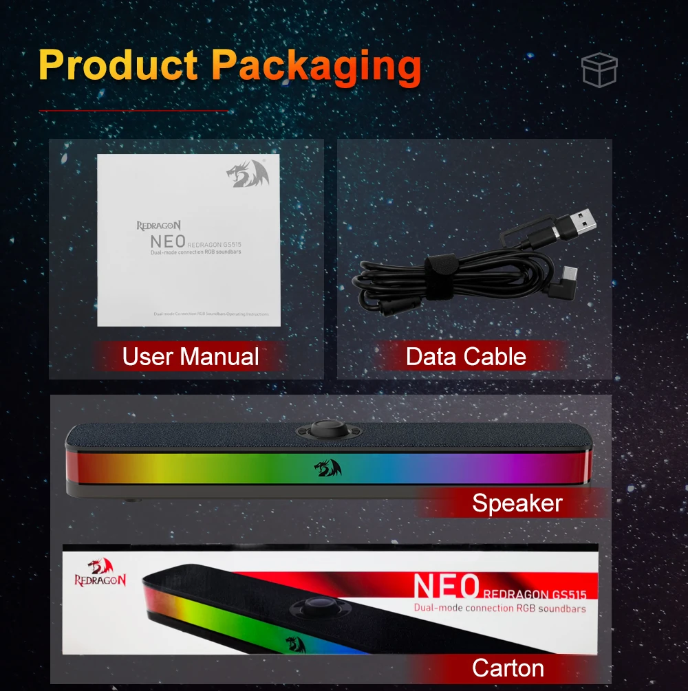 REDRAGON NEO GS515 RGB Desktop Soundbar 2.0 Channel Stereo Computer USB Speakers Support Bluetooth Wireless loudspeakers for PC