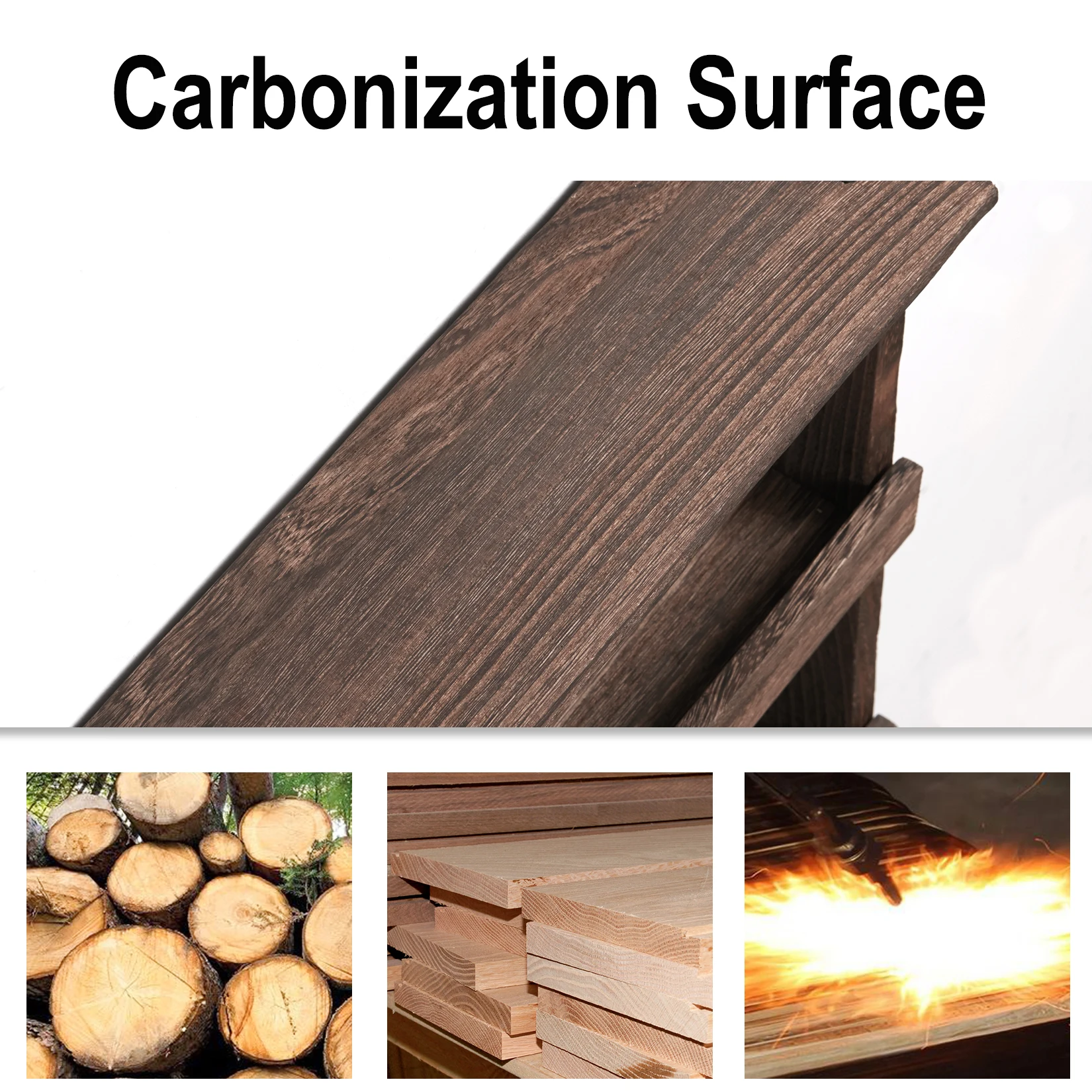 Rustic Torched Wood Wall Mounted 4-Tier Spice Rack Hanging Spice Shelf Storage Jars Stand Organizer