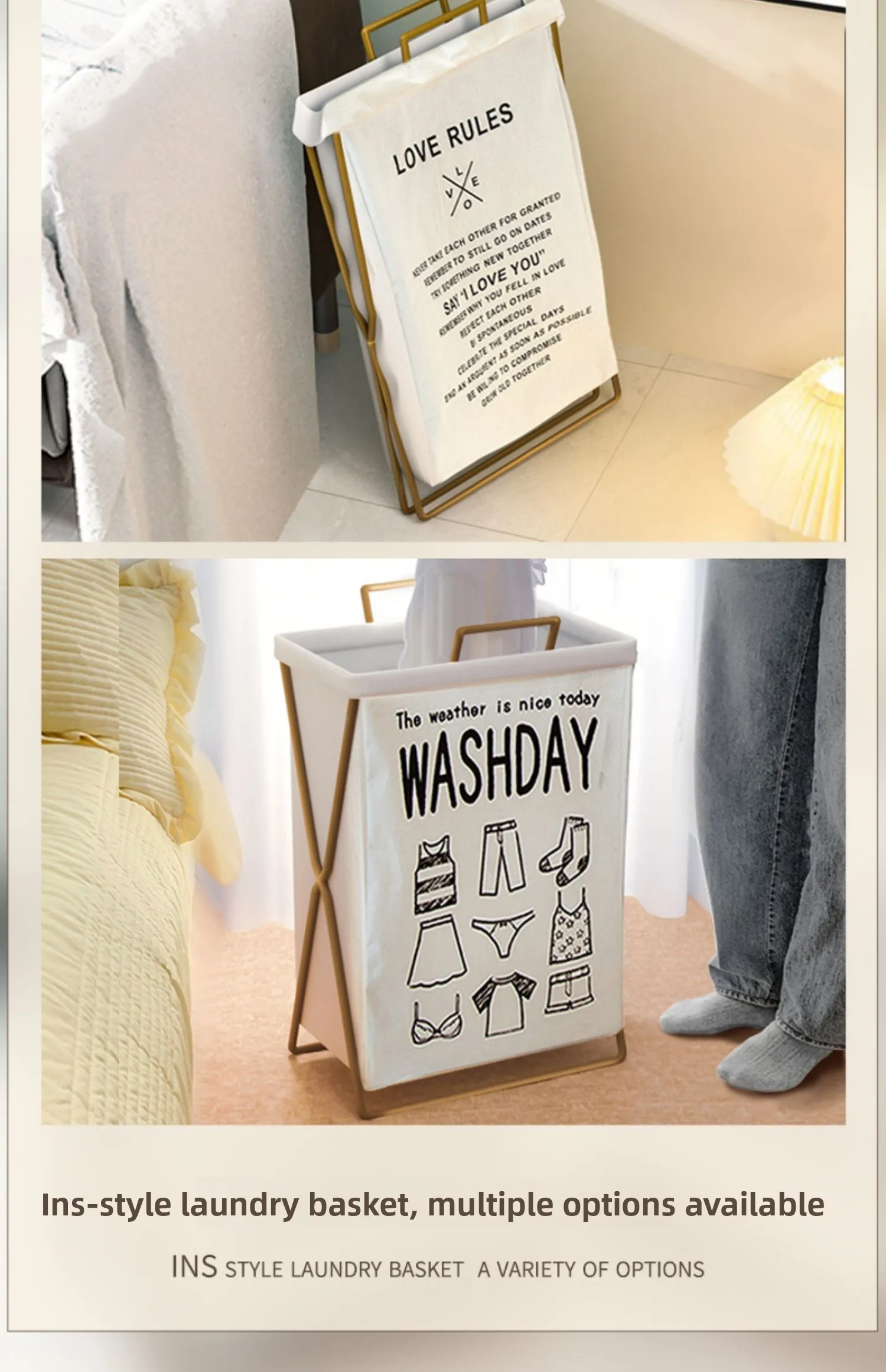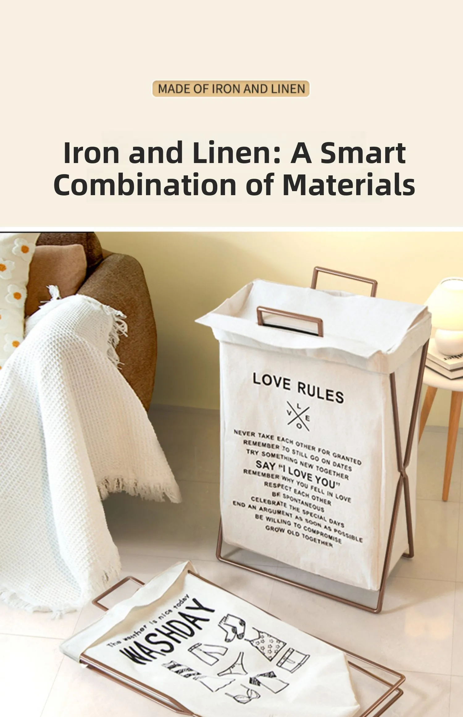 Trendy Foldable Laundry Basket with Lid for Home Batoom Dir Clothes Hamper Iron Material Japanese Sle Storage Basket