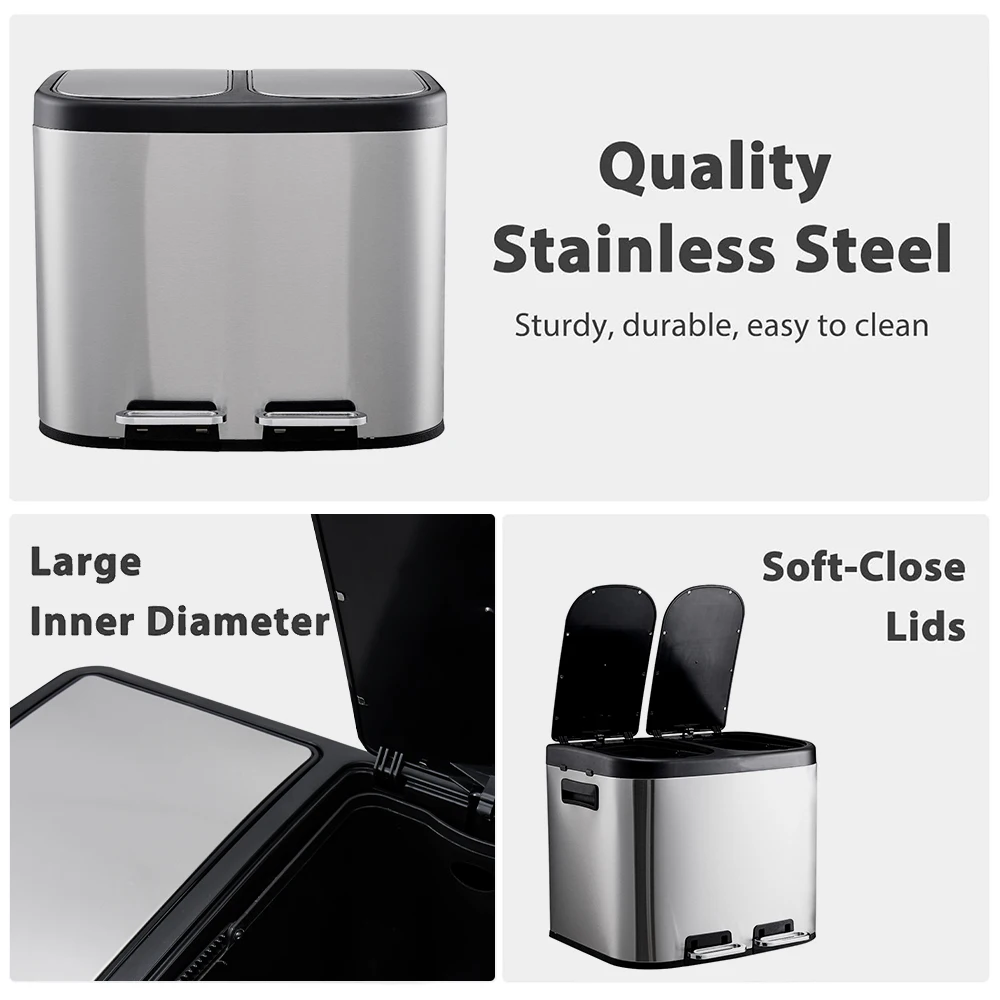 Voltsify 20L Stainless Steel Step Open Trash Can with Dual Pedals Kitchen Household Large Capacity Hotel Trash Can