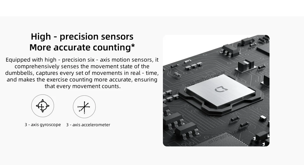 Equipped with high - precision six - axis motion sensors, it comprehensively senses the movement state of the dumbbells, captures every set of movements in real - time, and makes the exercise counting more accurate, ensuring that every movement counts.