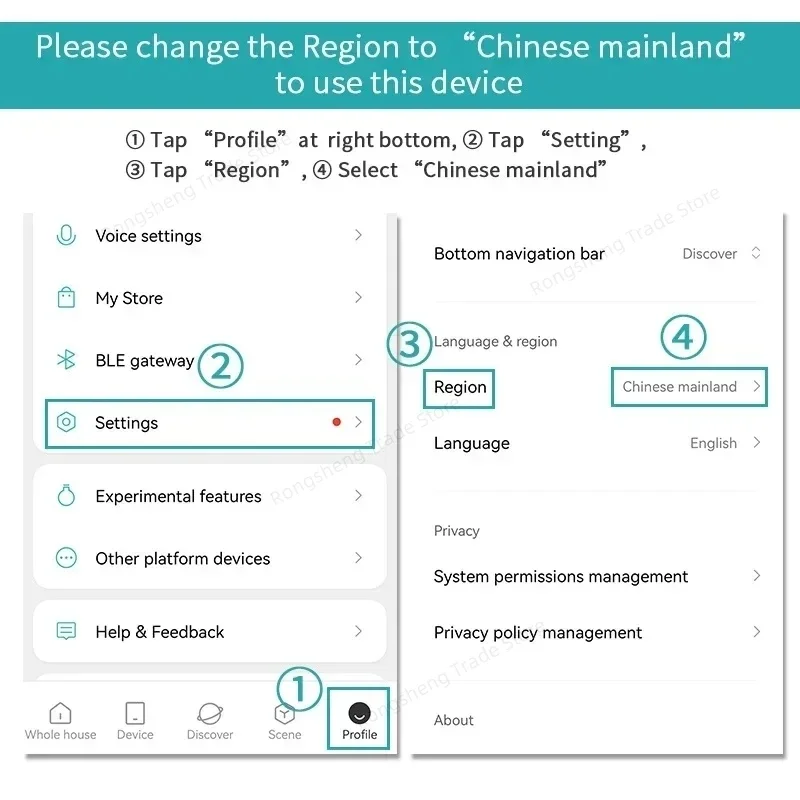 NOTE: This product version is for the China region. When adding cameras, please select the Chinese server in the Mijia settings.