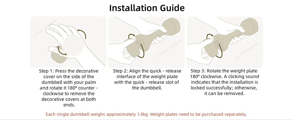 Step 3: Rotate the weight plate 180° clockwise. A clicking sound indicates that the installation is locked successfully; otherwise, it can be removed.