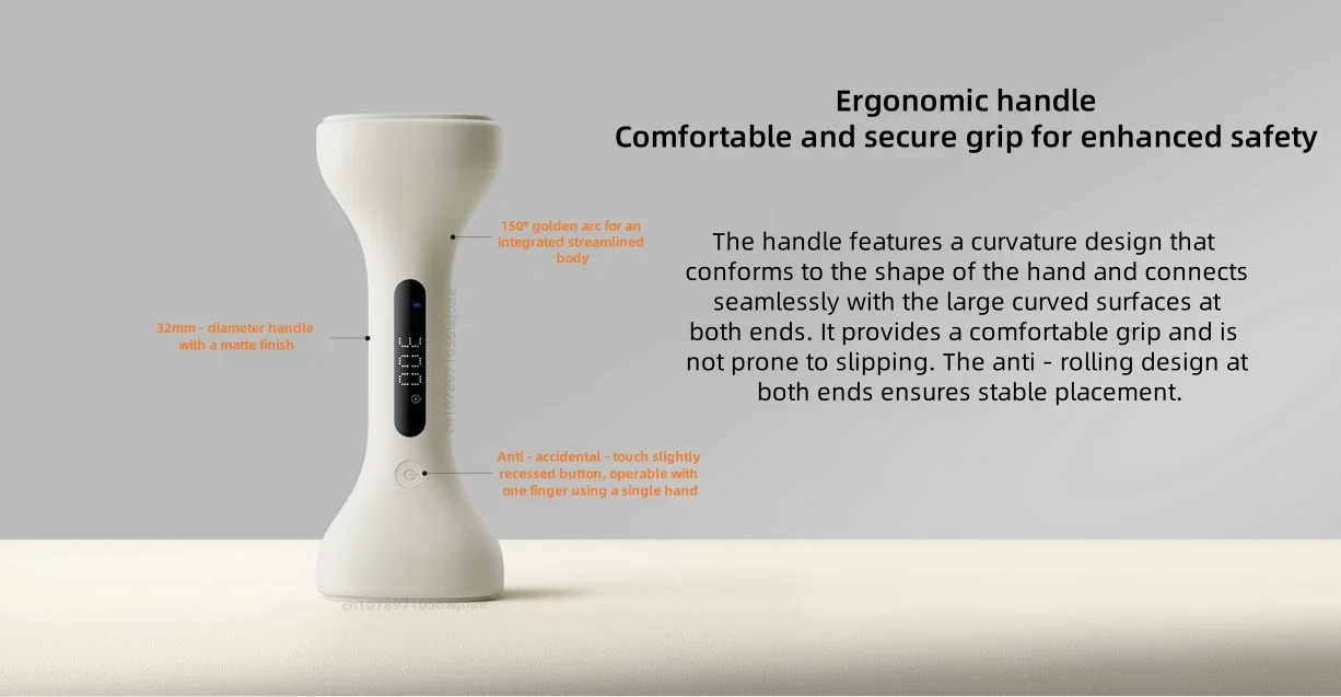The handle features a curvature design that conforms to the shape of the hand and connects seamlessly with the large curved surfaces at both ends. It provides a comfortable grip and is not prone to slipping. The anti - rolling design at both ends ensures stable placement.